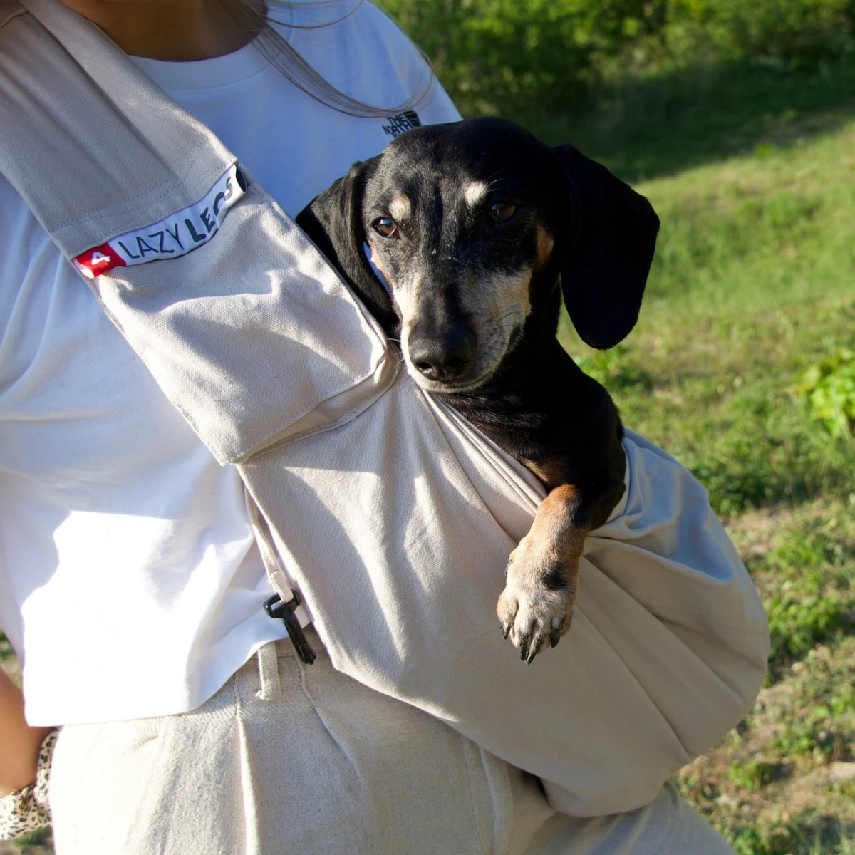 Met de 4LazyLegs PetCarrier draagt u uw viervoeter overal veilig mee naar toe. Ideaal voor als uw hond geen lange wandelingen meer kan maken, maar u dit wel graag doet. Gemaakt van 100% polyester en voorzien van extra padding bij uw schouders voor extra draagcomfort. De veiligheidsclip zorgt ervoor dat uw hond niet zomaar uit de draagzak kan klimmen/springen, u bevestigt deze aan de halsband of het harnas van uw hond.