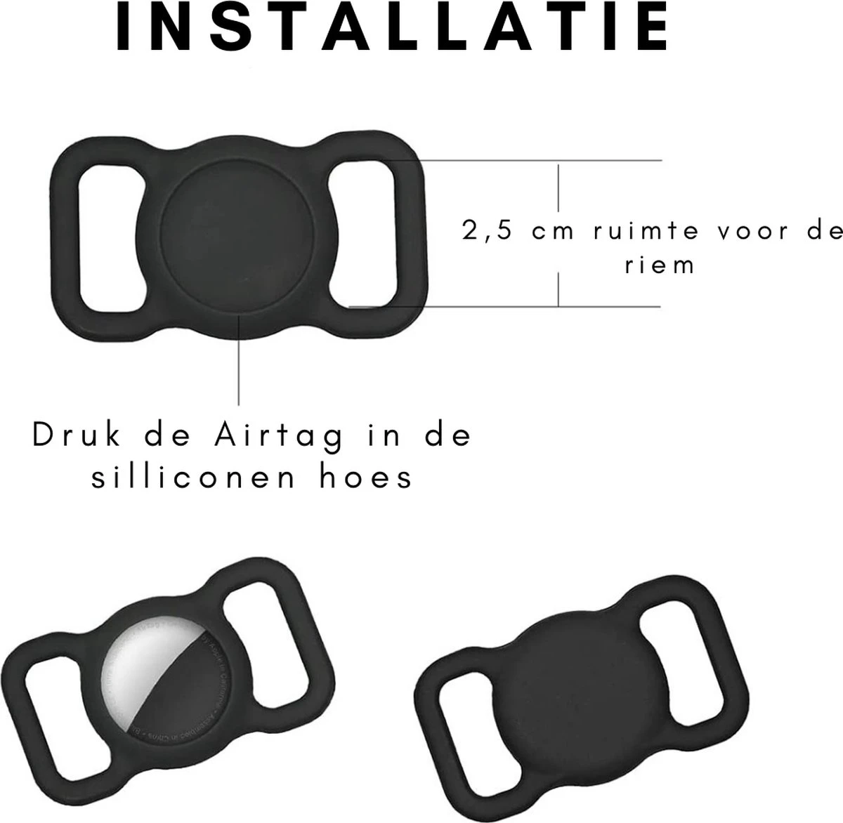 Zwarte HPKits siliconen Airtag Hoes welke perfect om de halsband van jouw huisdier past. Door je Airtag van Apple te plaatsen in de hoes raak je je huisdier nooit meer kwijt. Het hoesje is makkelijk in gebruik en past perfect om de Airtag heen.