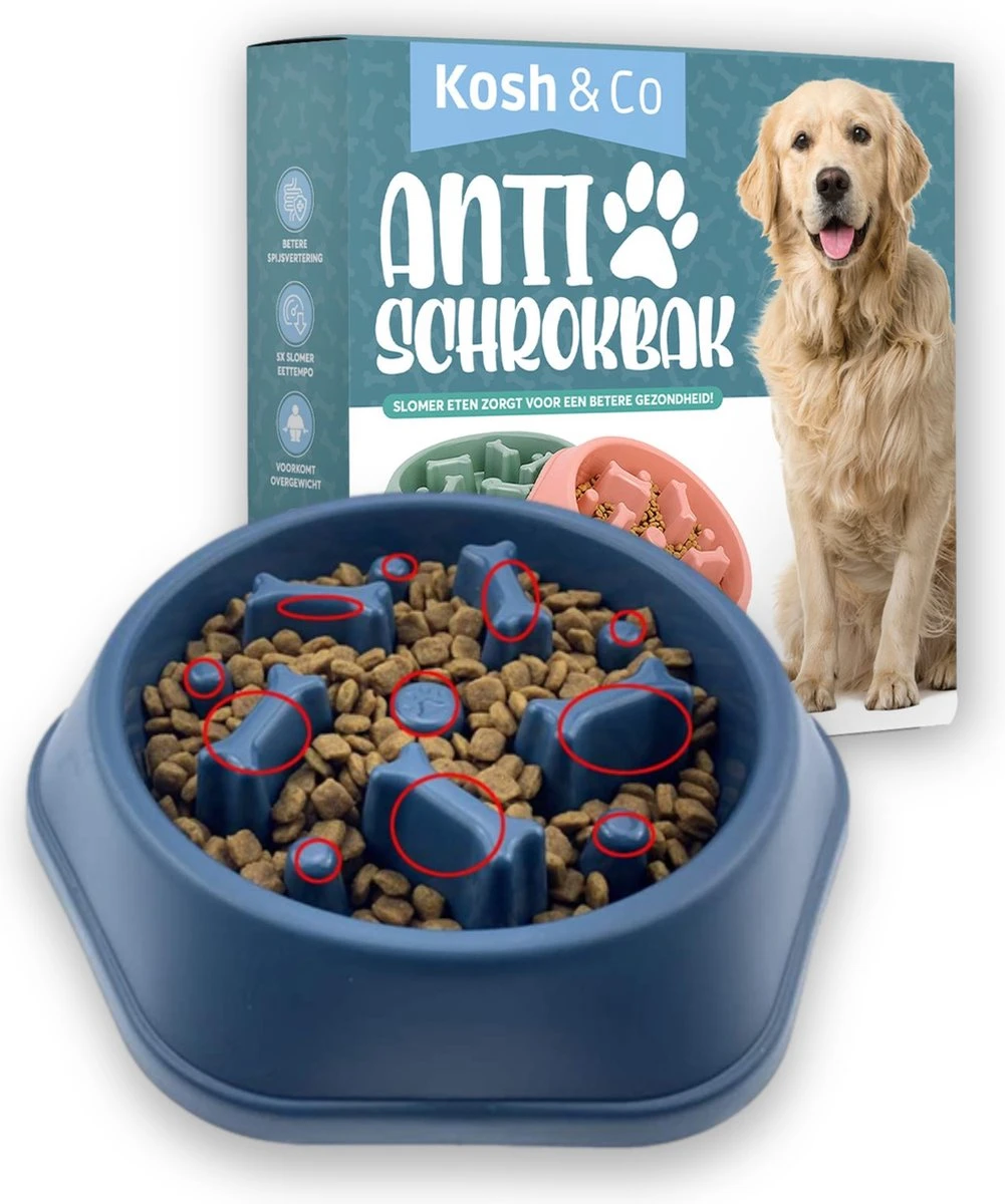 Je kent het wel, de hondenvoer is op en je vult deze bij. Jouw hond rent gelijk naar de voerbak en begint te schransen. Dit is niet gezond en kan zorgen voor maagtorsie (GDV) en hele nare gevolgen hebben. Deze anti schrok voerbak zorgt ervoor dat jouw hond 5x zo sloom eet en voorkomt dit. Haal deze hondenbak in huis en zorg ervoor dat jouw harige vriend rustig kan genieten van zijn eten.