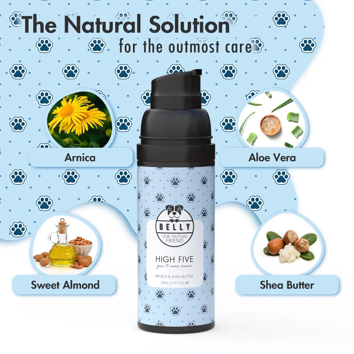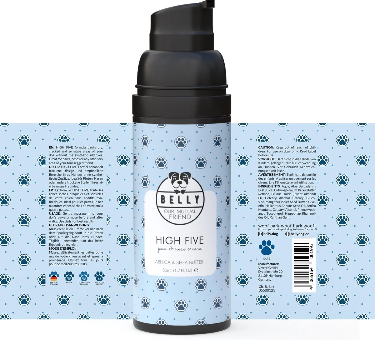 Onze Belly Dog Paw Cream is perfect voor de verzorging van de poten van je hond. De rijke zalf voorkomt gebarsten, beschadigde of gevoelige hondenpoten. Bovendien werkt de zalf verzachtend, hydrateert en draagt bij tot een snellere wondgenezing. De crème wordt snel geabsorbeerd en laat geen vettige film achter op de pootjes.