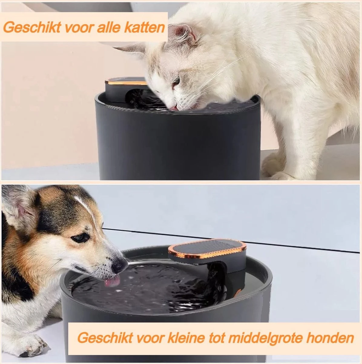De drinkfontein is geschikt voor alle katten en middelgrote honden. De drinkfontein heeft een waterreservoir van maximaal 3L