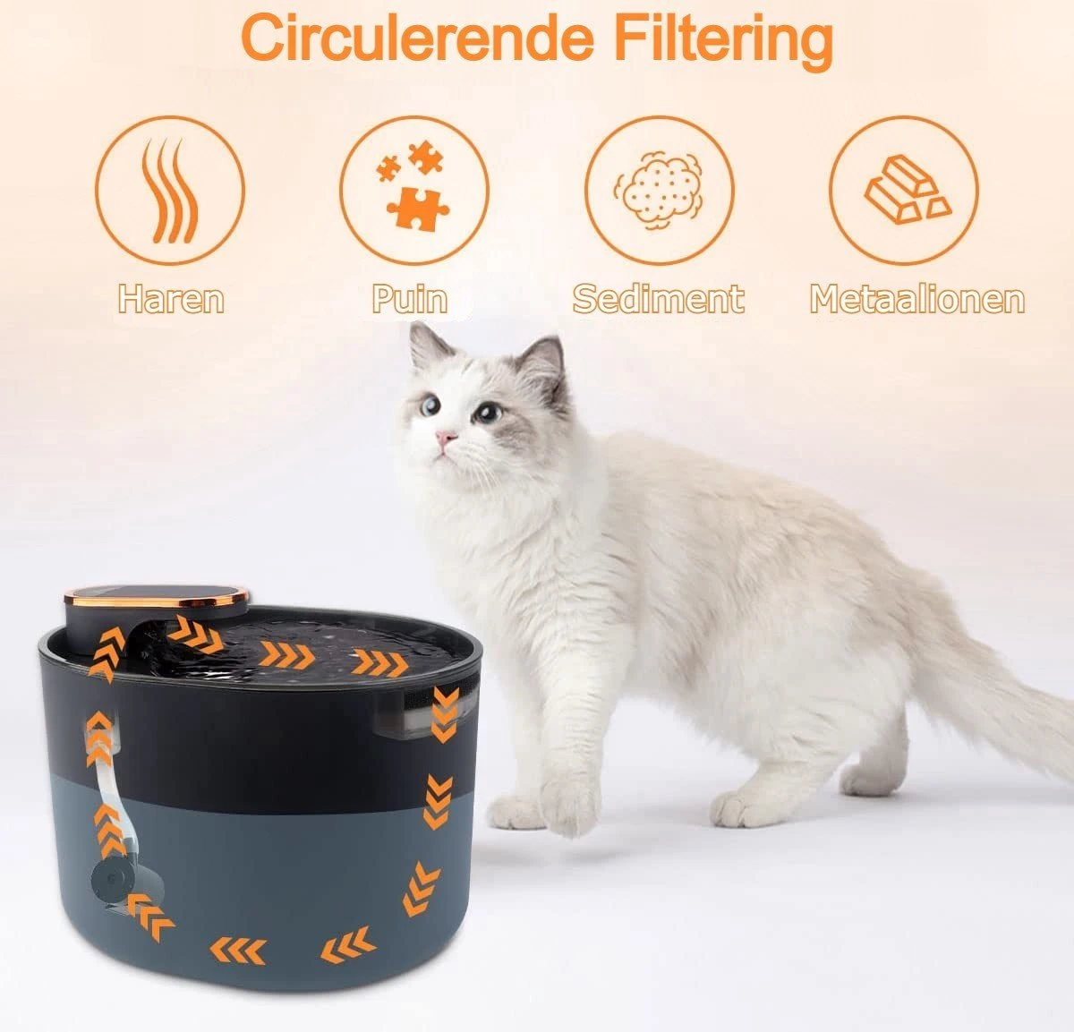 De Fontein is erg gezond voor je huisdier doordat de water gefiltert wordt, zo krijgen ze minder stof en haartjes binnen.