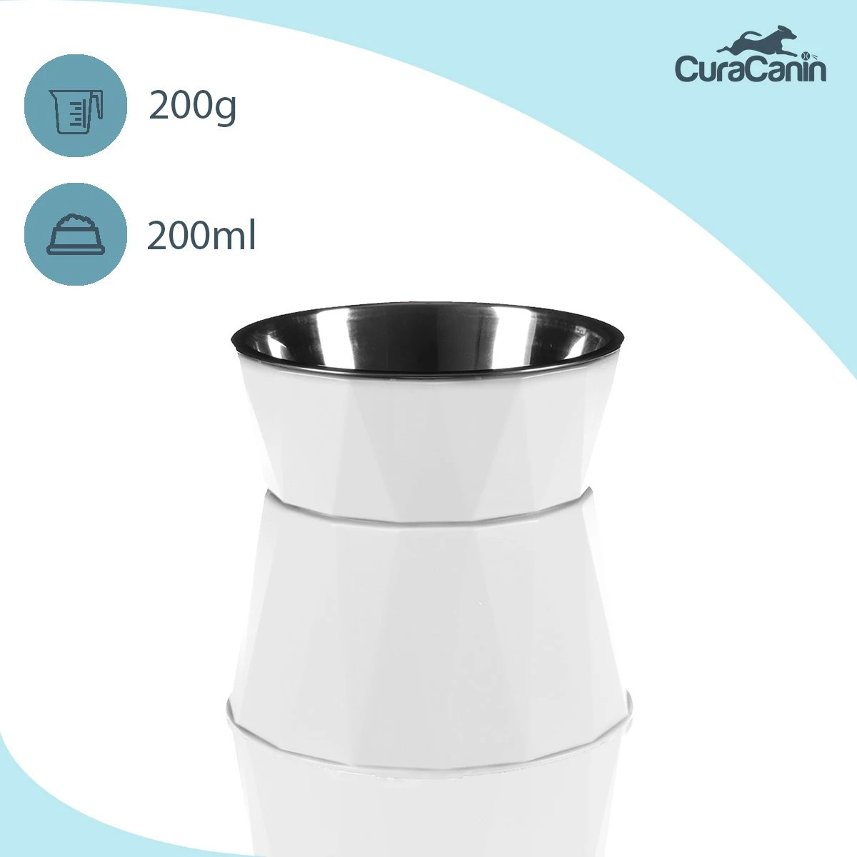 De standaard is bewust gemaakt om nek klachten van je huisdier te voorkomen. De CuraCanin voer en drinkbak zorgt voor een prettige eetpositie en de juiste houding voor jouw huisdier. Door de verschillende maten is die geschikt voor kleine en grote huisdieren. Exclusief standaard bereikt de Voerbak of Waterbak een hoogte van 4,5 cm. Inclusief standaard bereikt de Drinkbak maar liefs 14 cm.