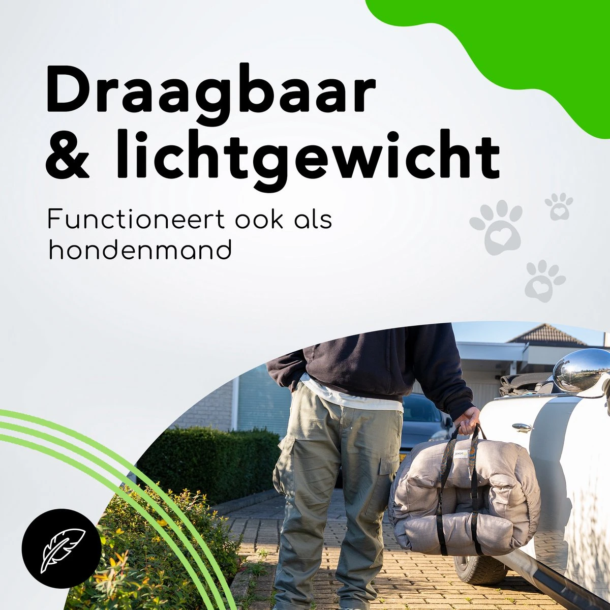 - Functioneert ook als hondenmand
