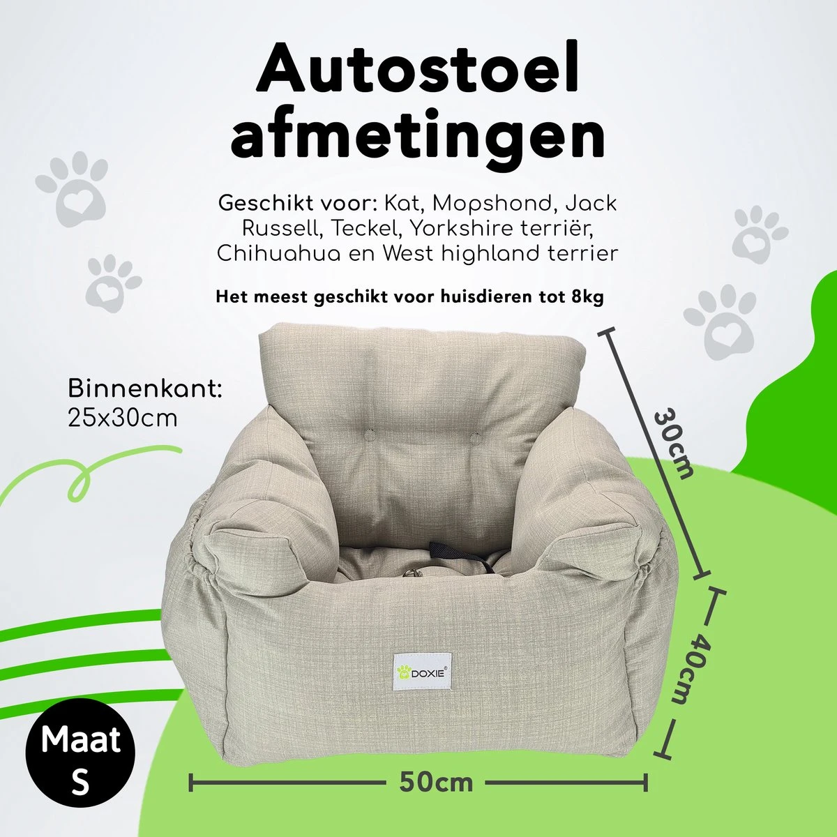 Maat S – geschikt voor honden tot 35 cm in lengte of tot 8 kg.