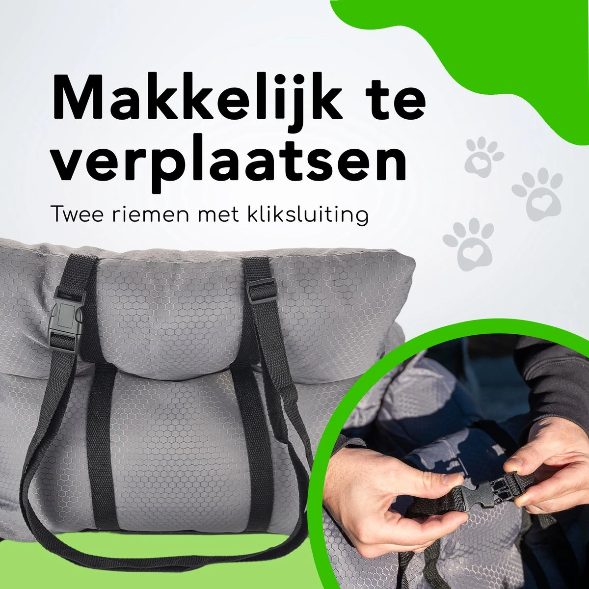 Dit autozitje is uitgevoerd met een gordel die jouw hond of kat op zijn plaats kan houden en de bewaring van de veiligheid vergroot. De antislip bodem zorgt ervoor dat het hondenkussen niet snel zal verplaatsen op de autostoel of achterbank. Daarnaast heeft het kussen twee riemen met eenvoudige gespsluitingen die je om een autostoel kan binden. Deze zorgen er ook voor dat het kussen niet zal verschuiven. Dit is erg belangrijk om de veiligheid in het voertuig te bewaren voor zowel jouw hond als de andere medereizigers!
