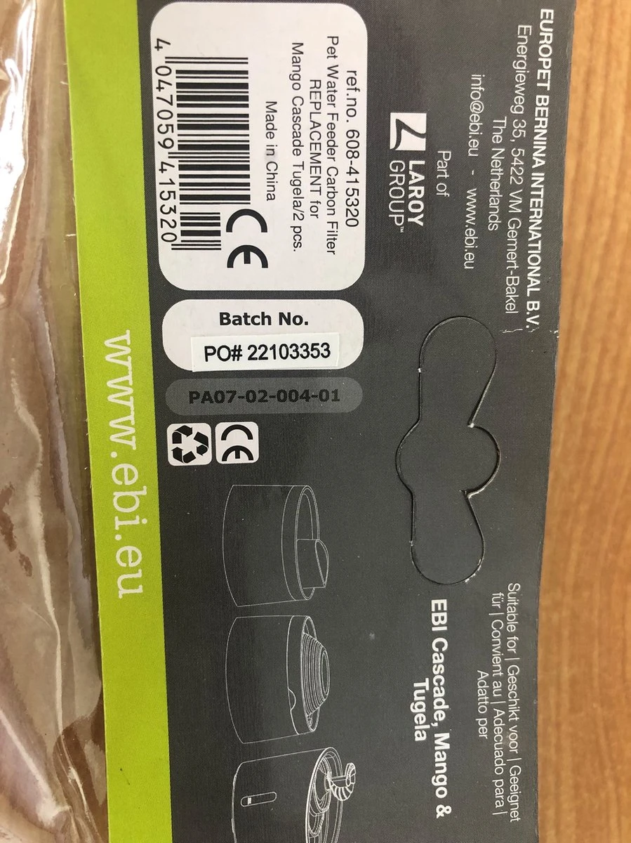 Ebi Pet Water Feeder Carbon Filter Vervanging Voor Mango 2 st