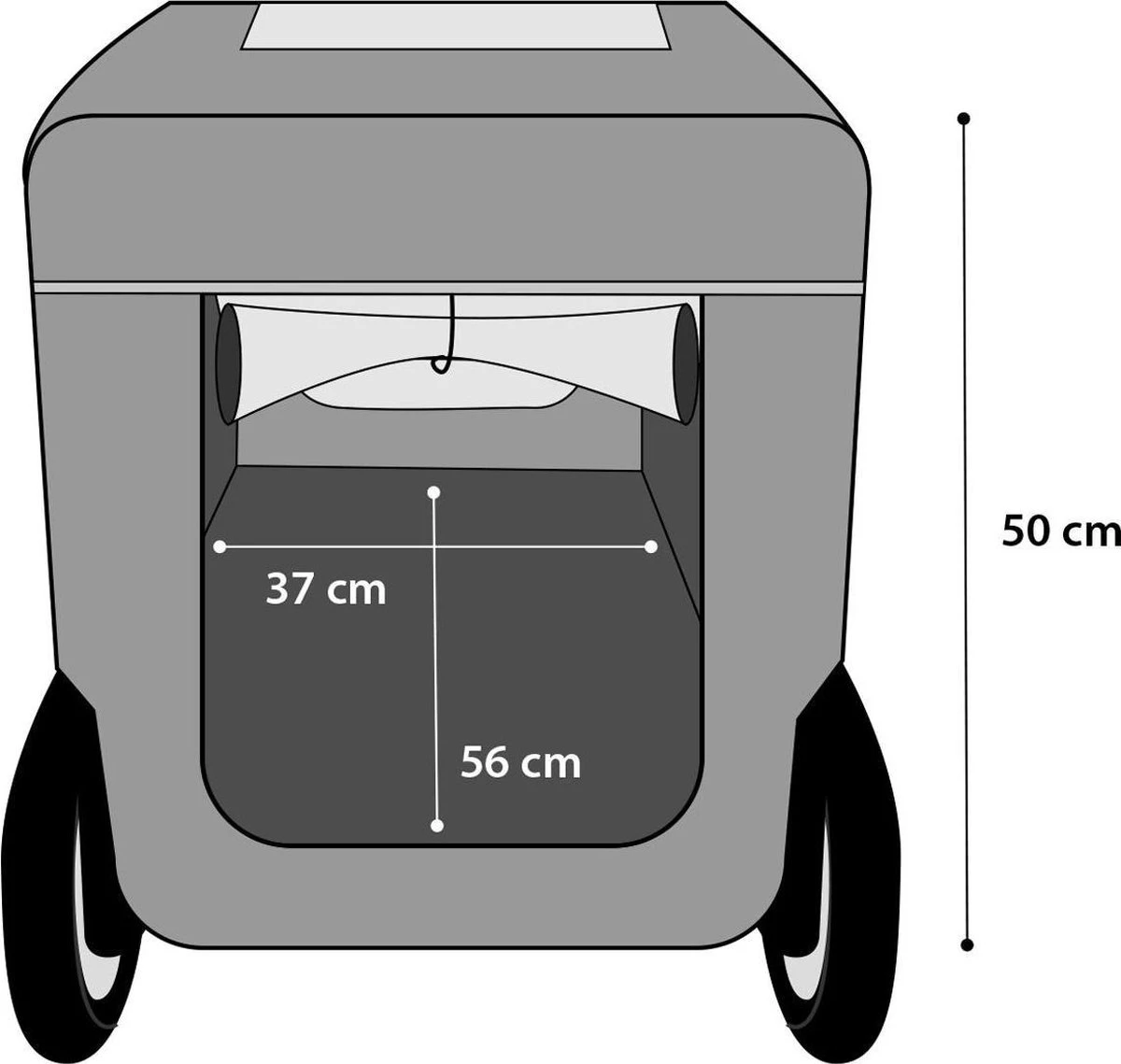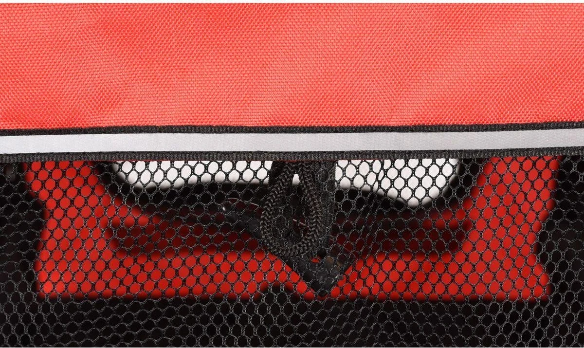 Deze hondenfietskar maakt het mogelijk om lange ritten te maken met jouw hond. De fietskar is voorzien van twee wielen met reflectoren en kan eenvoudig worden gekoppeld aan de meeste fietsen. Deze kar voor honden en andere huisdieren heeft een mooie zwart/rood kleur en is voorzien van reflectie strepen waardoor de kar goed opvalt op donkere dagen. Ook is hij voorzien van een vlag welke je nog meer laat opvallen. Jouw hond kan eenvoudig in de kar gezet worden door dat de voorzijde bijna helemaal open te ritsen is. Ook is hij voorzien van veel ventilatie gaas, dit bevorderd niet alleen de luchtcirculatie, het maakt het ook mogelijk voor jouw huisdier om alles in de gaten te houden onderweg. In de winter kun je de fietskar netjes opbergen door hem gedeeltelijk in te klappen.