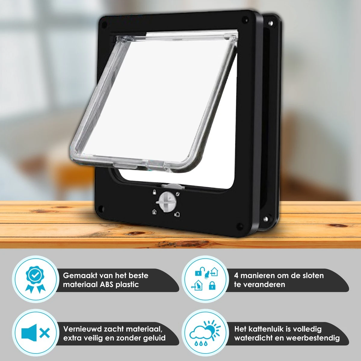De Gluxury®️ kattenluik is de nieuwe oplossing om volledige vrijheid te geven aan jouw kat! Door de Gluxury®️ kattenluik kan je kat zelf bepalen hoe laat hij/zij naar buiten gaat en weer thuiskomt. Zo is het niet meer nodig om zelf telkens de deur open te doen en bang zijn dat je kat vanavond niet meet thuis kan slapen. Je kan zelf met de vierwegsluiting bepalen welke richting het kattenluik op slot gaat. Ook zit er een tochtstrip en magnetische sluiting in die tocht en andere ongewenste tegenhoudt.
