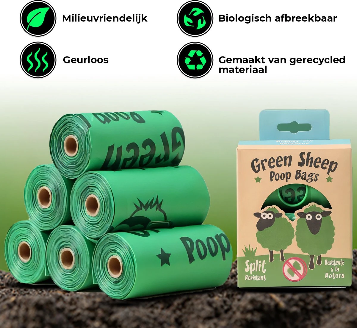 We weten allemaal dat plastic zakken als belangrijke bron van afval bijdragen ​​aan de enorme plasticsoep op aarde. Bioplastic is gemaakt van planten zoals maïs, suikerriet of aardappels. Deze grondstoffen zijn 100% recyclebaar en biologisch afbreekbaar. Bioplastic in het restafval gaat naar de afval-energiecentrale. De warmte die vrijkomt bij verbranding van restafval wordt gebruikt om elektriciteit te maken. Daardoor zijn er minder aardolie, gas of kolen nodig en dat is goed voor het milieu en er komen geen schadelijke stoffen vrij. De opgewekte stroom is groen. Door te kiezen voor de Green Sheep poepzakjes ben jij dus erg milieuvriendelijk bezig.