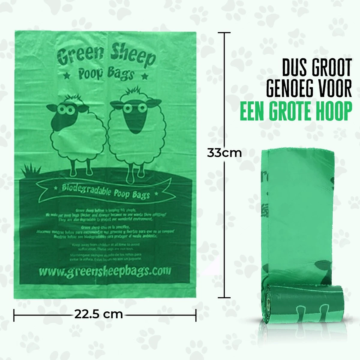 Alleen zijn veel zakjes te dun, te klein, niet stevig genoeg, niet makkelijk af te scheuren, niet milieuvriendelijk, te doorzichtig of niet makkelijk mee te nemen. Kiezen voor de hondenpoepzakjes van Green Sheep is kiezen voor kwaliteit. Of je nu een grote of kleine hondenbezitter bent, voeg de hondenpoepzakjes van Green Sheep maar aan je boodschappenlijst toe. Naast de poepzakjes, ontvang je ook een poepzakjeshouder met karabijnhaak en mét zaklamp. Zo houd je ook in het donker schone handen, omdat je altijd ziet wat je doet.