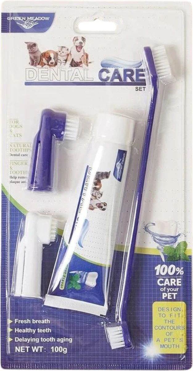 Bij het eerste gebruik: Om te wennen, smeer eerst wat tandpasta op de vingerborstel en laat je hond of kat dit proeven. Vervolgens kan je de pasta op de borstel doen om te poetsen.