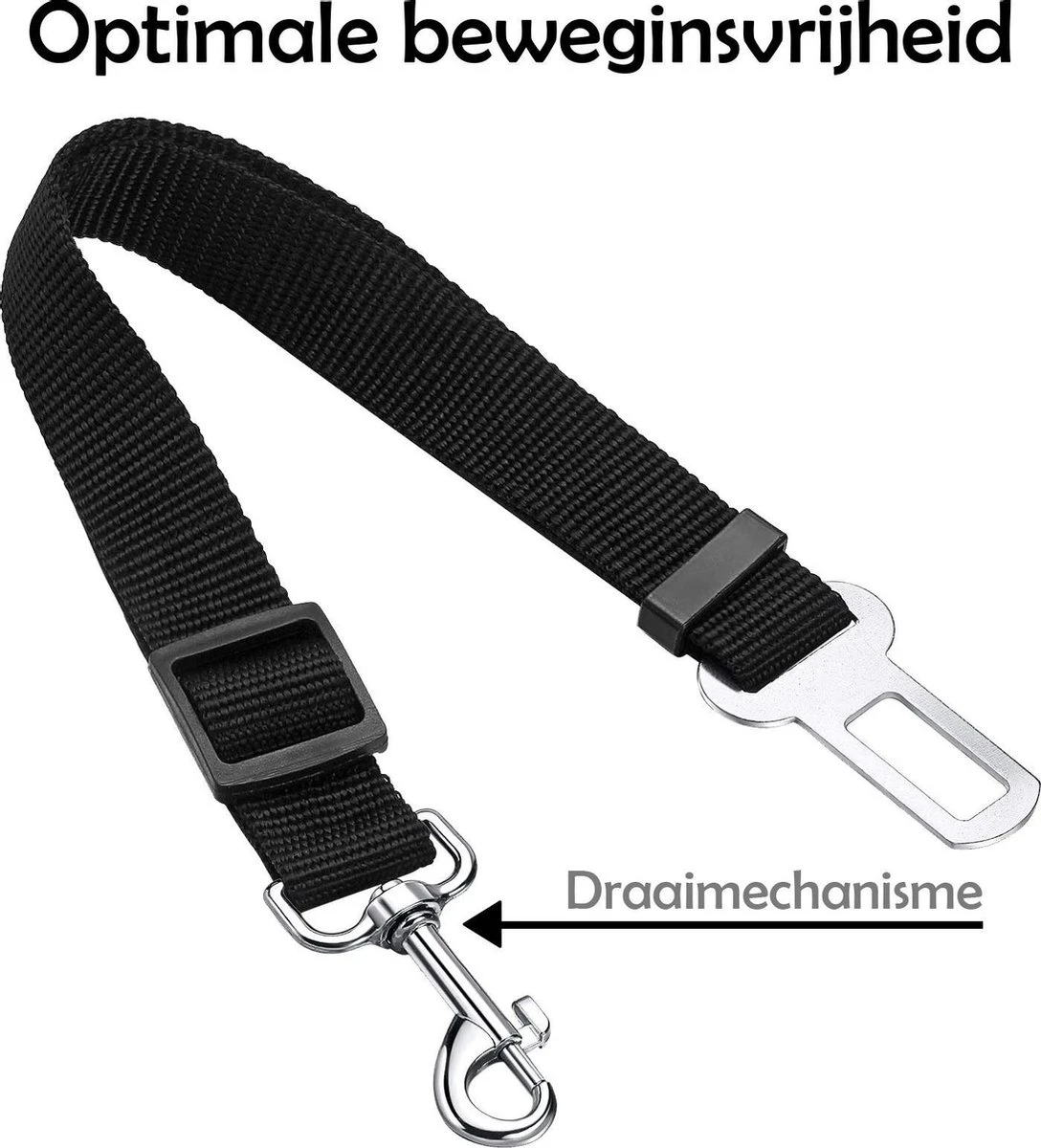 De honden autogordel is gemaakt van nylon waardoor deze zeer sterk is maar wel zacht aanvoelt. De honden autogordel beschikt tevens over een gesp welke in lengte versteld kan worden. De maximale lengte van de hondenriem autogordel is 70 cm lang. De minimale lengte van de honden autogordel is 44,5 cm. Doordat de hondengordel in lengte versteld kan worden is deze geschikt voor bijna alle soorten honden. Aan beide uiteinden van de hondengordel zit een bevestigingsmechanisme. Met de musketonhaak kan de riem bevestigd worden aan de halsband, het harnas of het tuigje. De musketonhaak is 360 graden draaibaar waardoor je trouwe viervoeter zich toch vrijuit kan bewegen en de hondenriem autogordel niet in de knoop raakt. Het andere uiteinden van de honden autoriem kan vervolgens bevestigd worden in de gordelhouder door middel van de gordelclip.