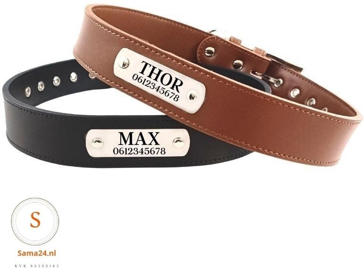 Elke stoere hond heeft deze leren graveerde leren hondenhalsband met naam en telefoonnummer nodig. Laat daarom je naam en telefoonnummer op deze mooie leren honden halsband met naam graveren. Want hiermee zorg je ervoor dat je hond altijd veilig de weg terug vind.