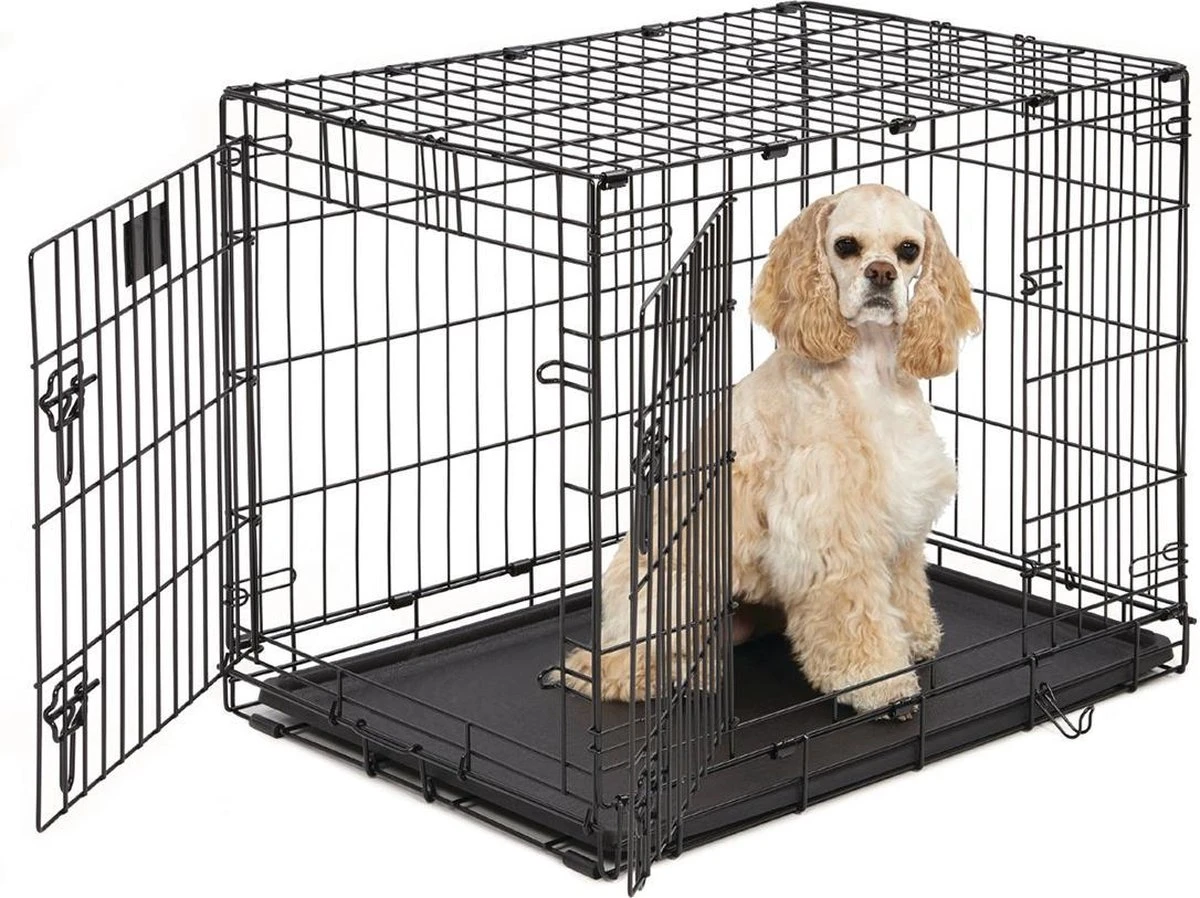 Deze zwarte hondenbench is een instapmodel. De bench is gemaakt van metaal en heeft een wat dunnere draaddikte. Er zit een kunststof lade in die uitschuifbaar is zodat je de bench makkelijk schoon kunt maken. Je kunt de bench inklappen en er zit een handvat aan zodat je deze makkelijk kunt vervoeren. Verkrijgbaar in de maten S tot en met XXL.