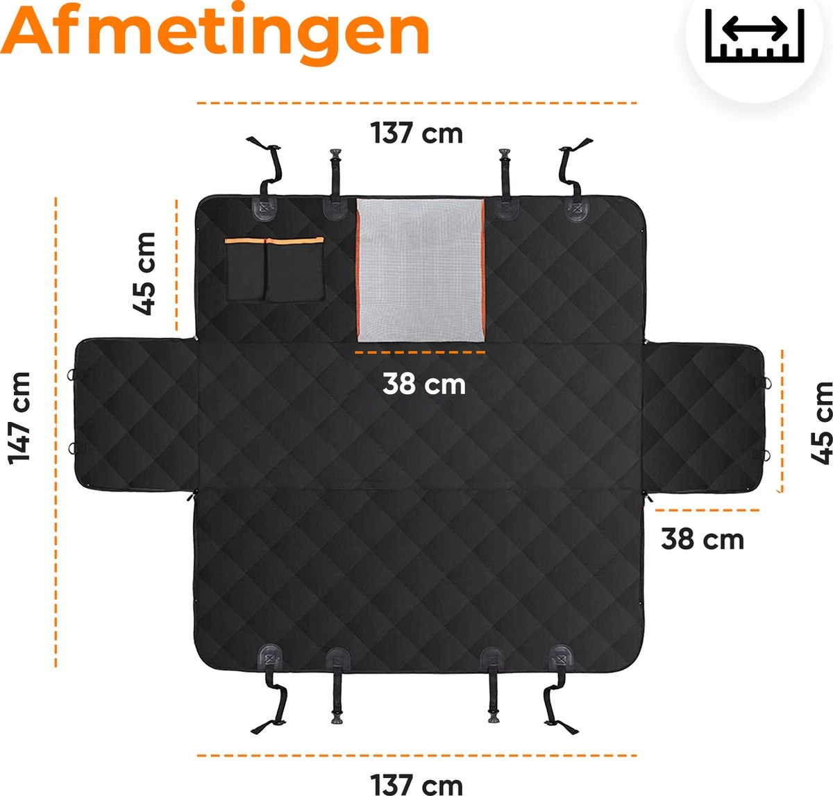 Het auto hondendeken is gemaakt van kwalitatief hoogwaardig 600D polyester, waardoor het extra sterk is. Ook beschikt het over een uitmuntende afwerking, zodat jij en je trouwe viervoeter een lange tijd plezier beleven aan het hondendeken. Daarnaast is het materiaal volledig waterdicht, wat voorkomt dat vloeistoffen op je autobekleding terecht komen.