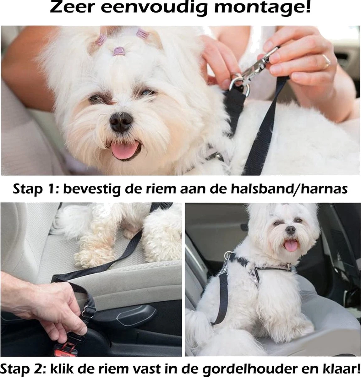 Deze hondengordel is onmisbaar als je met je hond op reis wilt. Klein of groot, deze hondenriem auto is dankzij de lengteverstelfunctie geschikt voor bijna alle hondenrassen. De hondenriem gaat van 43 tot 72 cm. U bepaalt zelf wat de beste lengte is voor uw hond. Ook zorgt deze hondengordel auto ervoor dat uw hond op één plek kan zitten, liggen of staan. U kunt dan veilig deelnemen aan het wegverkeer. Het ontwerp van de hondenriem is eenvoudig en daarom in twee stappen te bevestigen. Bevestig de karabijnhaak aan het harnas of de halsband van uw hond en klik de gesp in het veiligheidsslot van de autogordel. Let op: de NoXx hondenriem is niet geschikt voor Volvo’s.