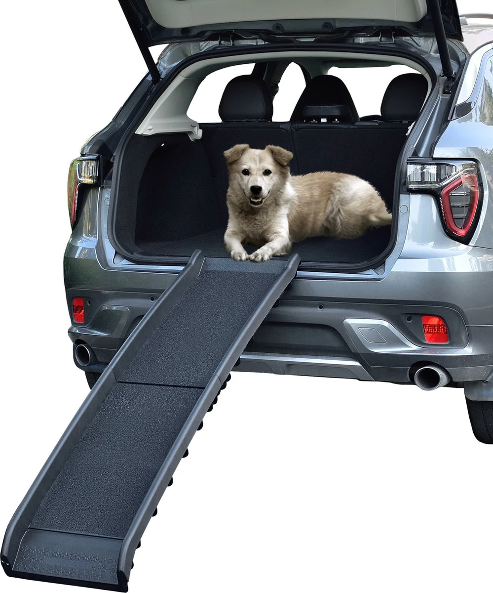 Dankzij de inklapbare hondenbrug kan uw huisdier gemakkelijk op of af uw auto stappen. De meegeleverde antislipbekleding kan indien nodig op de loopplank worden gelijmd. De autohelling is vooral geschikt voor huisdieren die door hun leeftijd of ziekte, als artrose en artritis, niet meer kunnen springen. Hij kan worden ingeklapt om opslagruimte te besparen wanneer hij niet wordt gebruikt.