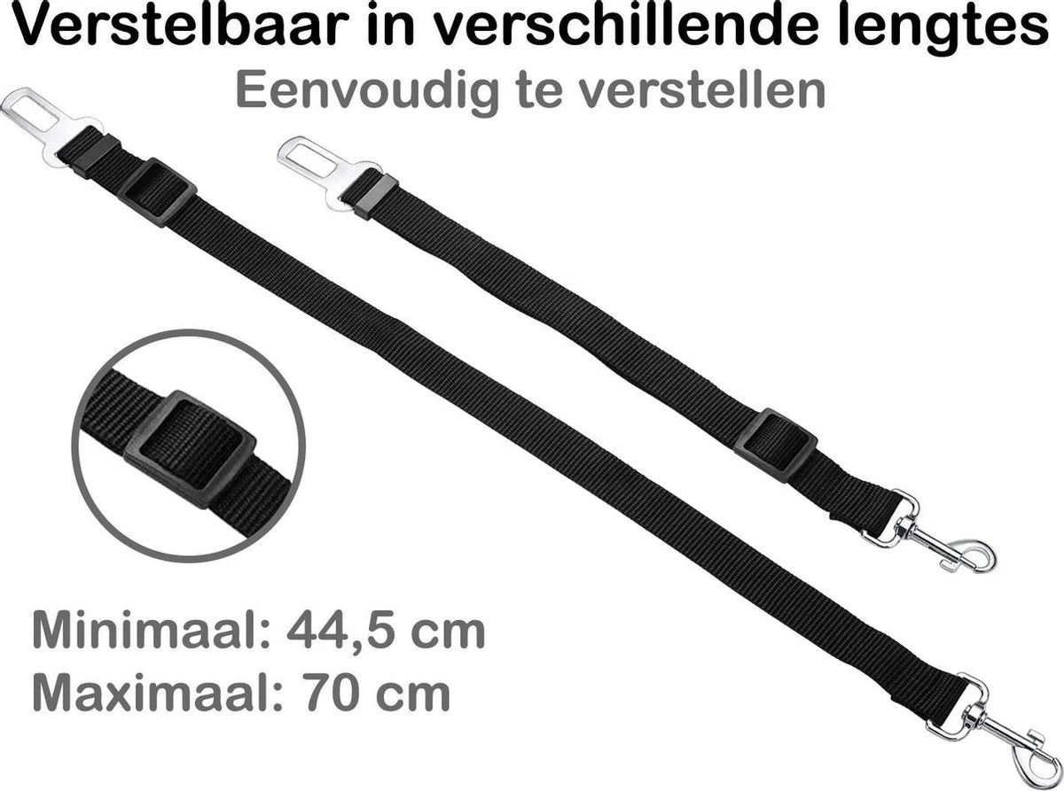 De hondenriem autogordel is in lengte verstelbaar zodat de hondengordel perfect bij de grootte van uw hond past. De hondenautogordel is te verstellen tussen 43 en 72 cm. Deze autogordel voor honden is eenvoudig in gebruik. Je klikt de veiligheidsgordel voor je hond namelijk in hetzelfde systeem als de andere veiligheidsgordels die in de auto zitten. Deze autogordel heeft aan de ene kant een karabijnhaak die u kunt bevestigen aan uw hond zijn tuigje of halsband. De andere kant klikt u in de veiligheidssluiting van de autogordel.
