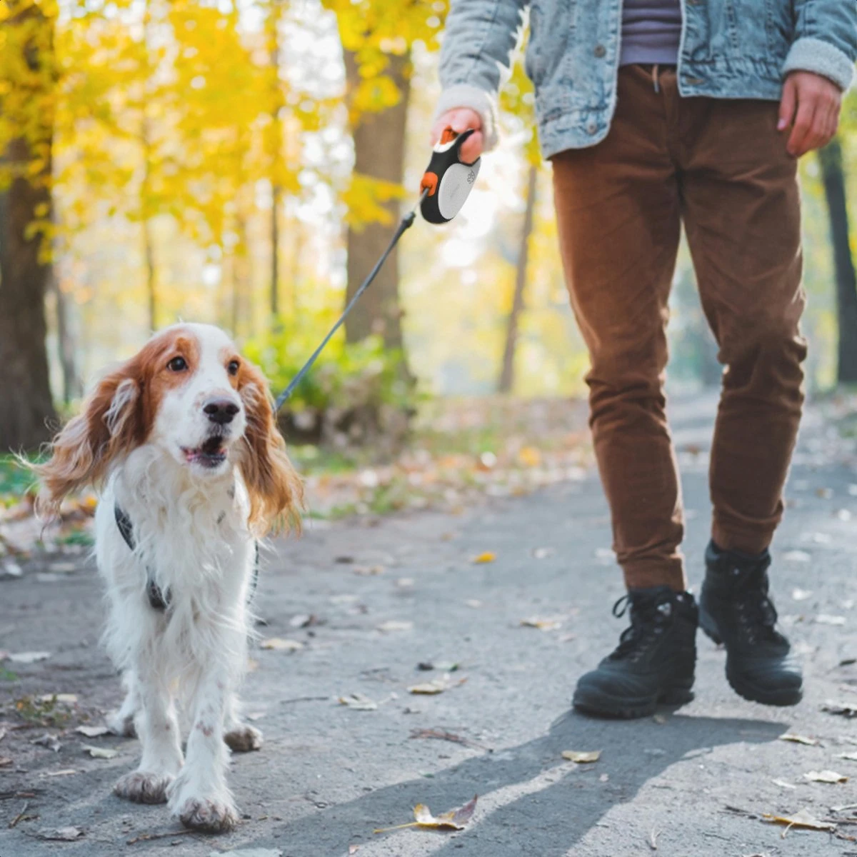 De hondenriem is zo ontworpen dat hij zeer soepel op- en afrolt. Met de ruime intrek opening heb je vanuit elke hoek controle over jouw hond. De tape band is gemaakt van een stevige kwaliteit nylon maar is NIET geschikt om op te kauwen.