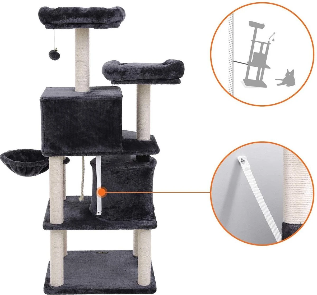 Songmics Kattenboom – Grijs – Fluweel