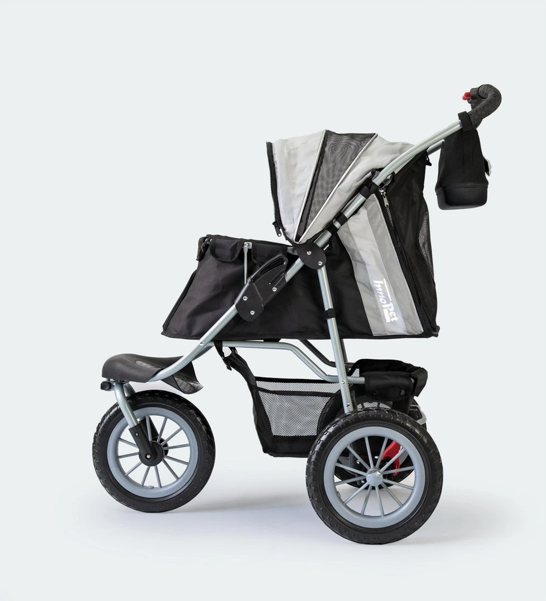 De InnoPet Comfort EFA ECO is de hondenbuggy die aan al uw verwachtingen voldoet. Zoals omschreven in de naam biedt deze hondenbuggy, met de 12 inch EFA-wielen, maximaal comfort voor u en uw huisdier. EFA is een duurzaam geproduceerd foam wat een sterk dempend karakter heeft en is daarom te vergelijken met het comfort van luchtbanden.. alleen kunnen deze banden niet lek gaan. U kunt het voorwiel fixeren waardoor deze buggy uitermate geschikt is voor het gebruik op onverharde wegen zoals bospaden.