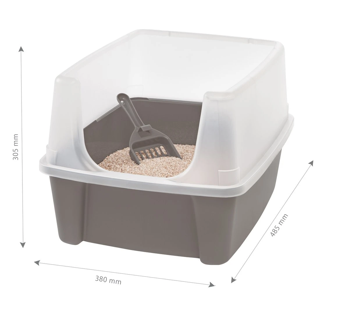 De Cat Litter Box is een stevige kattenbak gemaakt van robuust plastic. Deze kattenbak is gemakkelijk uit te scheppen met het inbegrepen schepje en de open indeling. Doordat de bak uit elkaar gehaald kan worden en de binnenkant een glad oppervlak heeft is het eenvoudig schoon te houden. De zijkanten zijn hoog en goed afgesloten zodat de kattenbakvulling in de kattenbak blijft. Met de Cat Litter Box heeft uw kat altijd genoeg ruimte om vrij te bewegen. Zowel geschikt voor kleinere en grotere katten. Verkrijgbaar in de kleuren Grijs/Wit en Taupe/Wit.