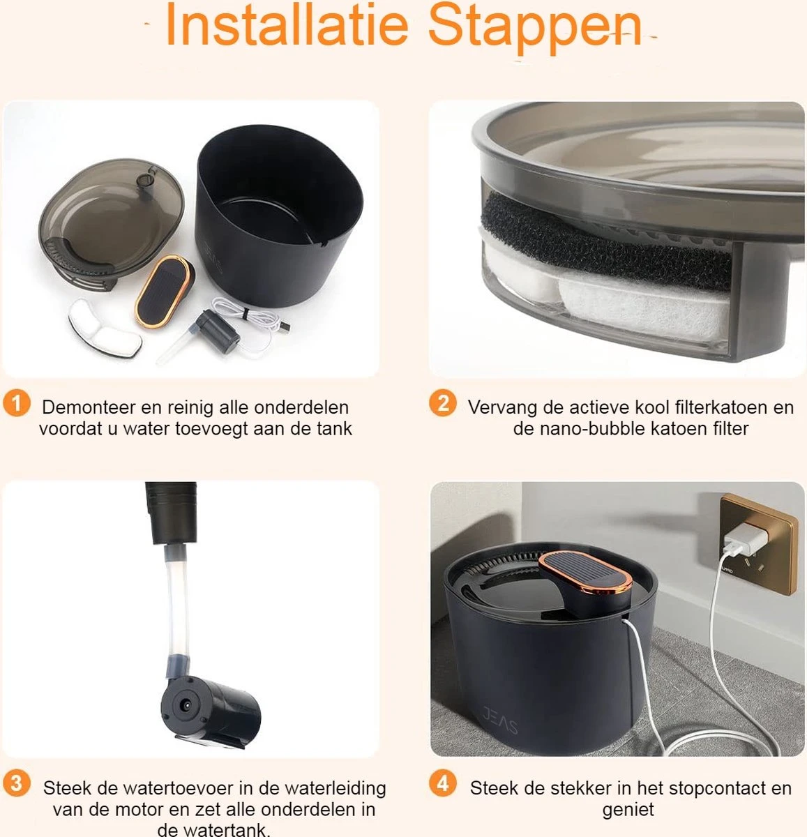 Dan is de drinkfontein van JEAS de oplossing. Met de nieuwste technologie en de stilste ( 20DB ) op de markt is de drinkfontein de aankoop voor uw huisdieren.