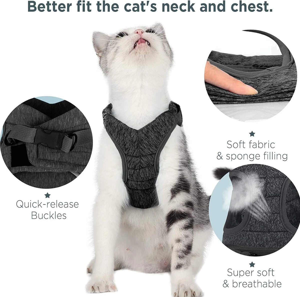 - Comfortabel en veilig ontwerp: borst en rug worden 360 graden omhuld. De druk op de borst is gelijkmatig, zodat trekken en verstikking worden voorkomen en de fragiele luchtpijp en keel van de kat is beschermd tegen pijn. Dit is veel veiliger en handiger dan een eenvoudige halsband of H-stijl harnas.