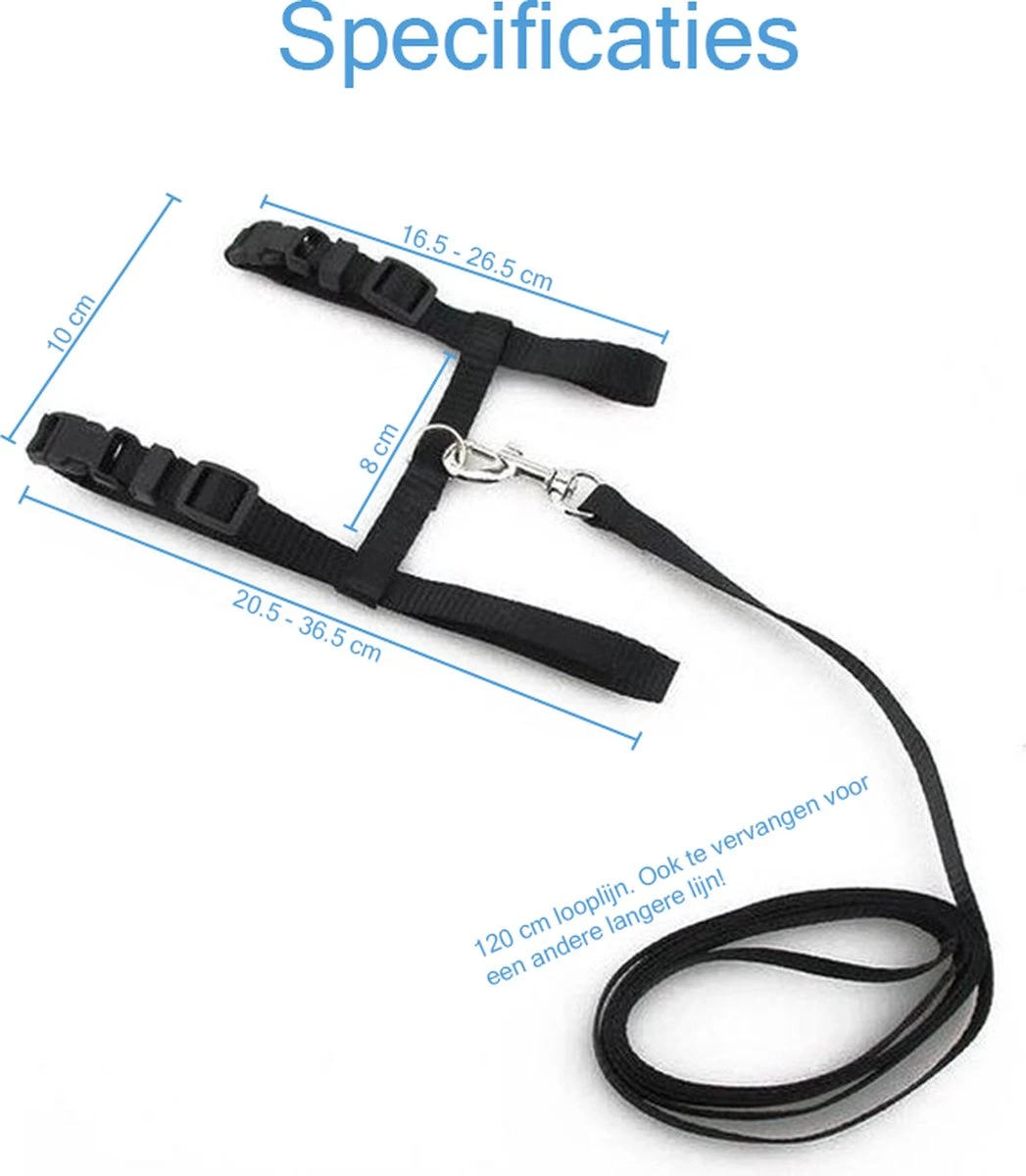 Niet moeilijk doen met afmetingen, deze one-size kattenharnas is gewoon verstelbaar.