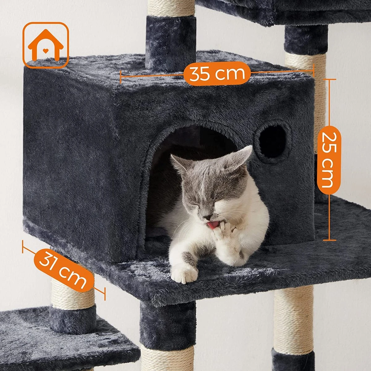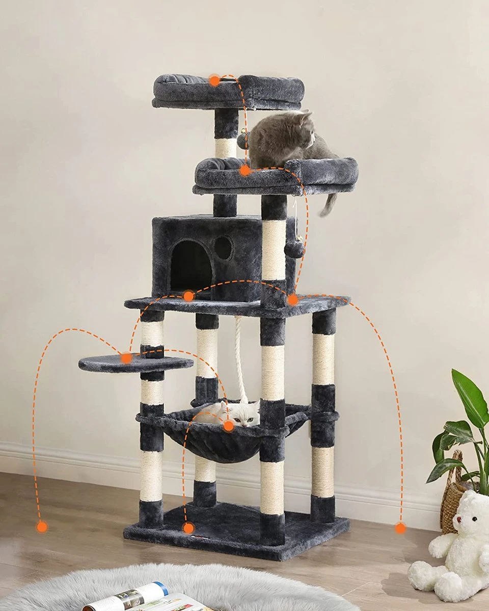 - Klimpaal voor jong en oud: de afzonderlijke elementen van de krabpaal zijn zo geplaatst dat zelfs kleine kittens of oudere katten gemakkelijk omhoog kunnen klimmen