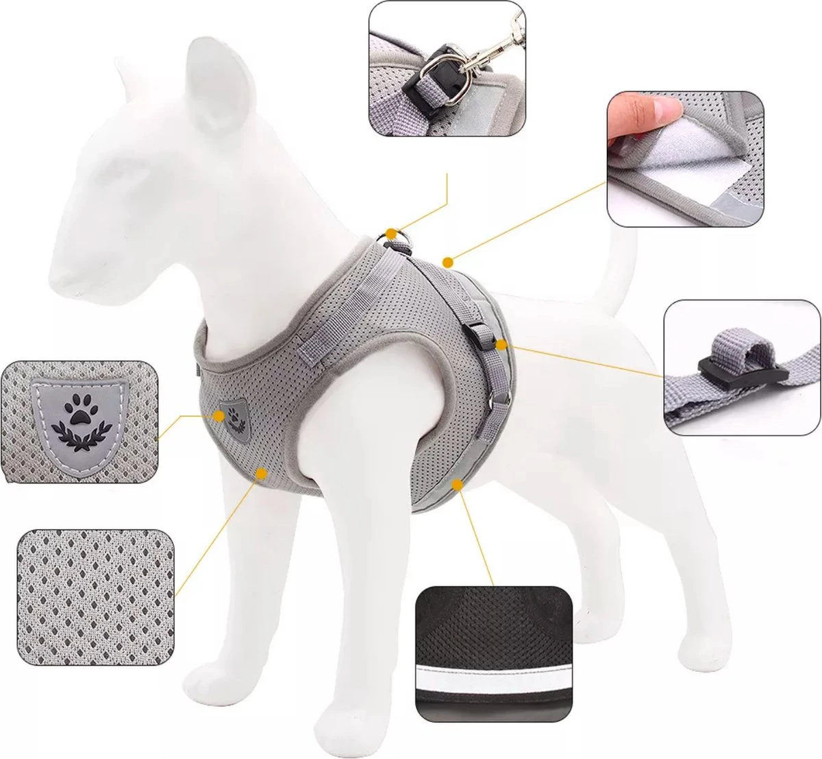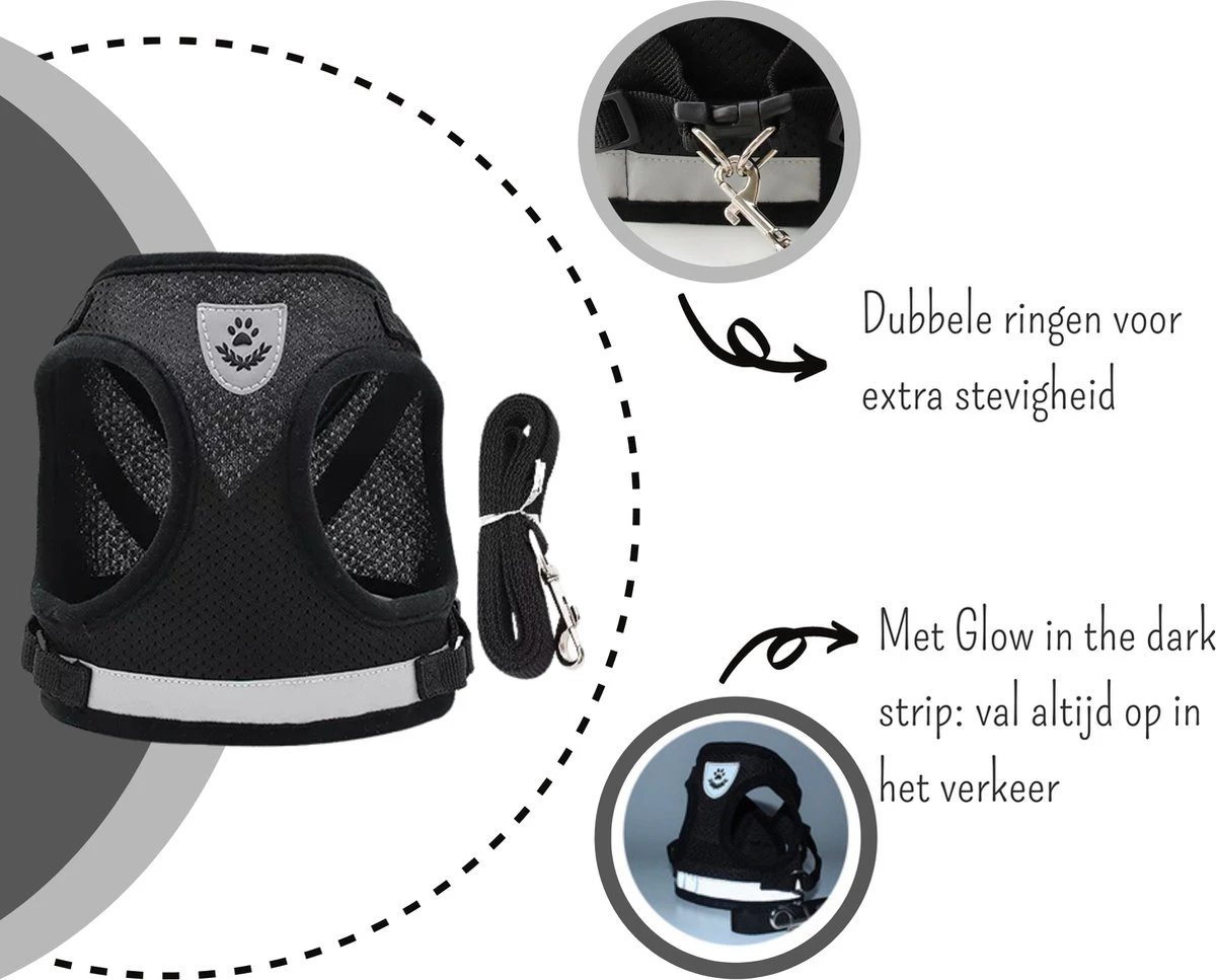 Deze harnas is gemaakt van een dubbellaagse mesh materiaal en gemaakt om lang mee te gaan. Het is sterker dan een typisch harnas, terwijl het zacht en extreem ademend blijft. Onze tuigjes hebben anti-wrijftechnologie met op maat gestikte hoes, ontworpen om je kat te beschermen tegen letsel door de riem die tegen zijn been wrijft voor ultiem comfort. In tegenstelling tot een halsband, wordt de druk beter over het lichaam verdeelt waardoor de kans op stikken een stuk kleiner wordt.