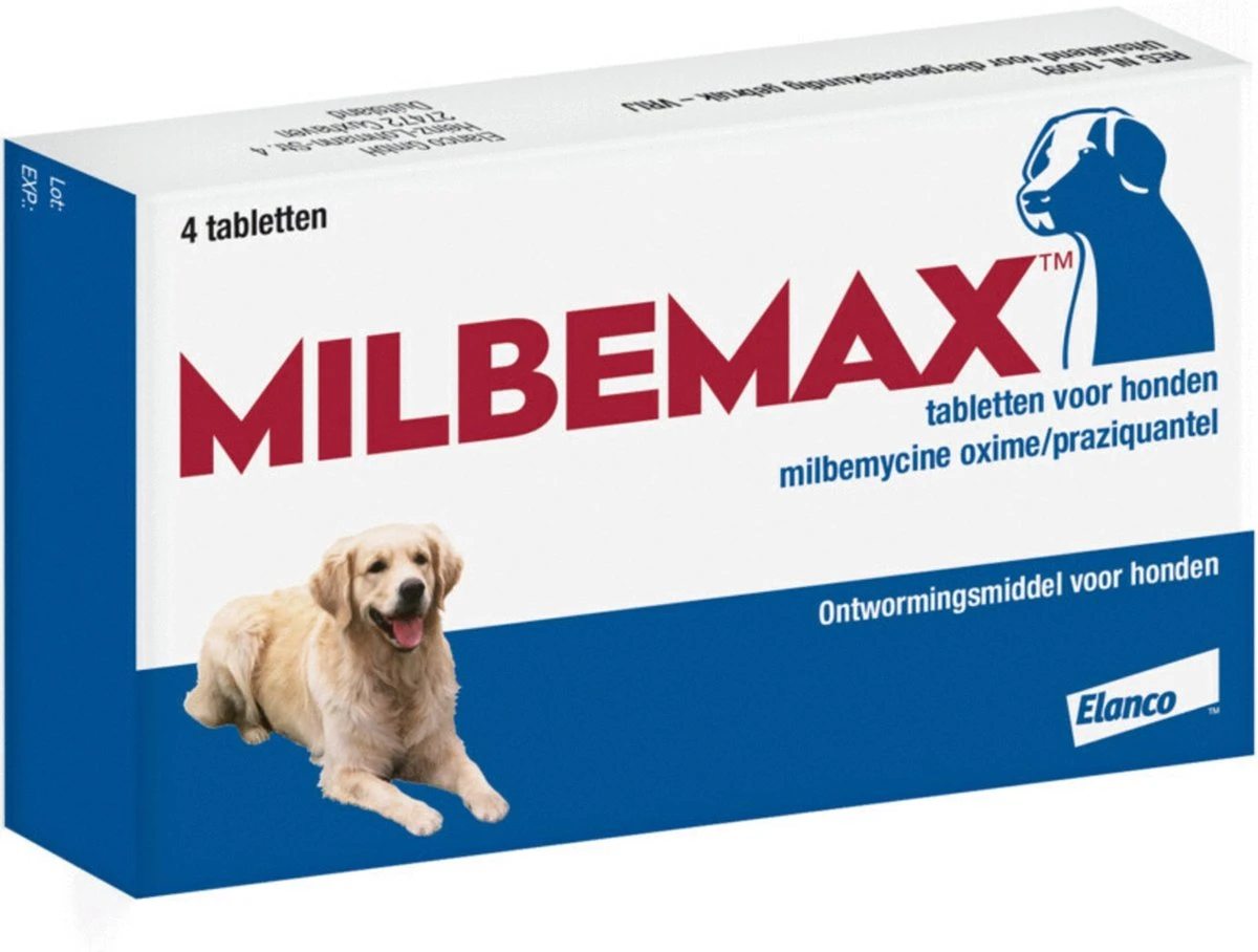 Milbemax ontwormingstabletten dragen bij aan de gezondheid van je huisdier. Dagelijks worden honden via allerlei bronnen blootgesteld aan parasieten, waardoor het onmogelijk is om te voorkomen dat ze in aanraking komen met wormen of hun eitjes. Regelmatig ontwormen is daarom belangrijk voor de gezondheid van je hond – zeker als je hond veel in contact komt met de buitenwereld, andere honden, zandbakken en speelweiden. Daarnaast verminder je door te ontwormen ook het risico op omgevingsbesmetting en daarmee besmetting van het gezin. Met makkelijk toe te dienen tabletten en een aanbevolen ontwormingsschema maakt Milbemax dit eenvoudig. De tabletten vormen een effectieve en breedspectrum behandeling voor puppy’s én volwassen honden, geschikt vanaf 2 weken leeftijd en 0.5kg. Ook geschikt voor drachtige en lacterende honden.
