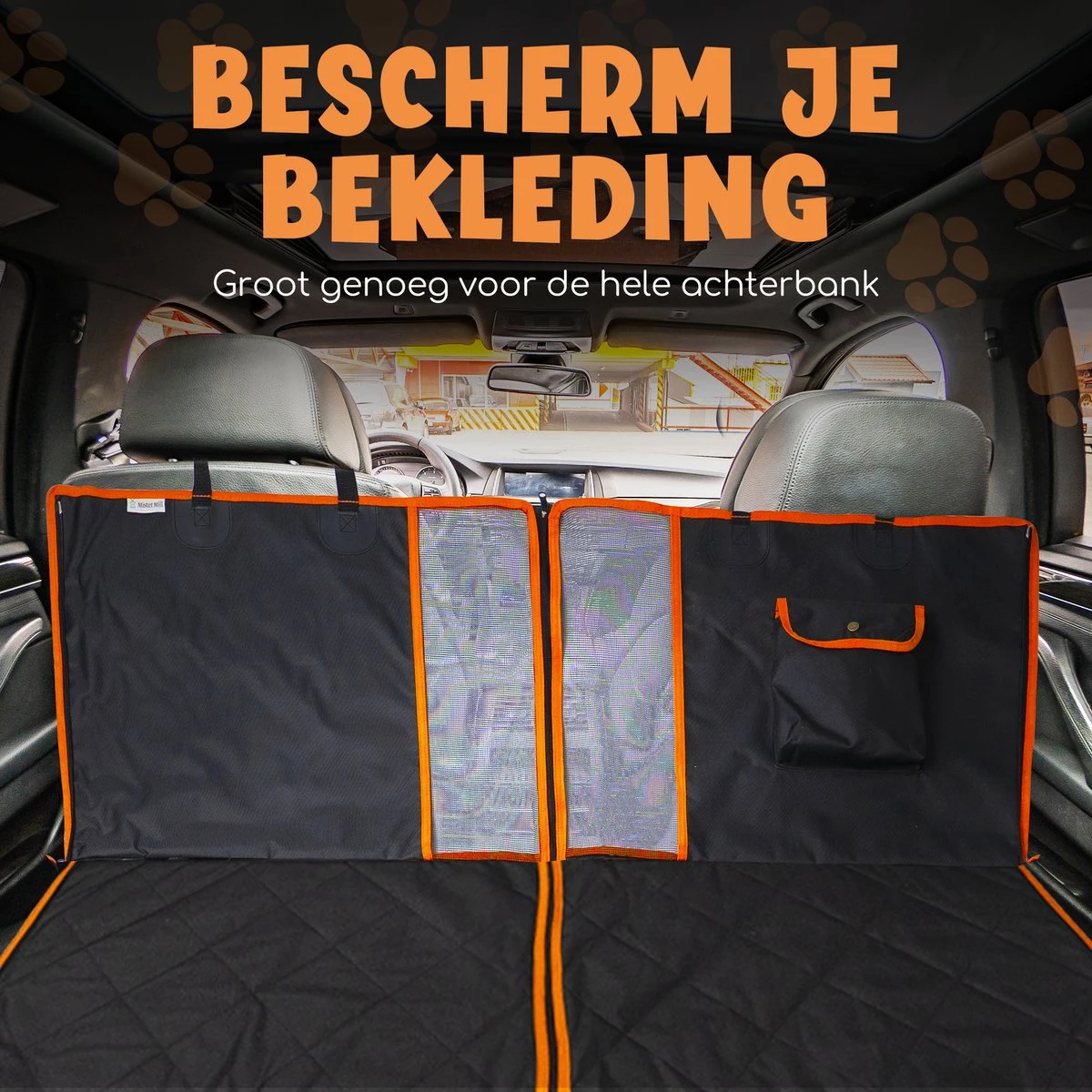 De Mister Mill auto bescherm deken is makkelijk te bevestigen aan de hoofdsteunen met de verstelbare bevestigingsriemen in iedere auto. Op alle hoeken en aan de zijkanten van het gaas zitten ritsen die je van de buitenkant kan bereiken (verbeterd n.a.v. de reviews, waarvoor dank!), waardoor jij je hond eenvoudig kan bereiken en/of in en uit laat stappen. Door het anti slip materiaal van hoge kwaliteit aan de onderkant blijft de autodeken goed op zijn plek. De zijflappen zorgen dat geen krassen en vuil op je armleuningen en deuren komen.
