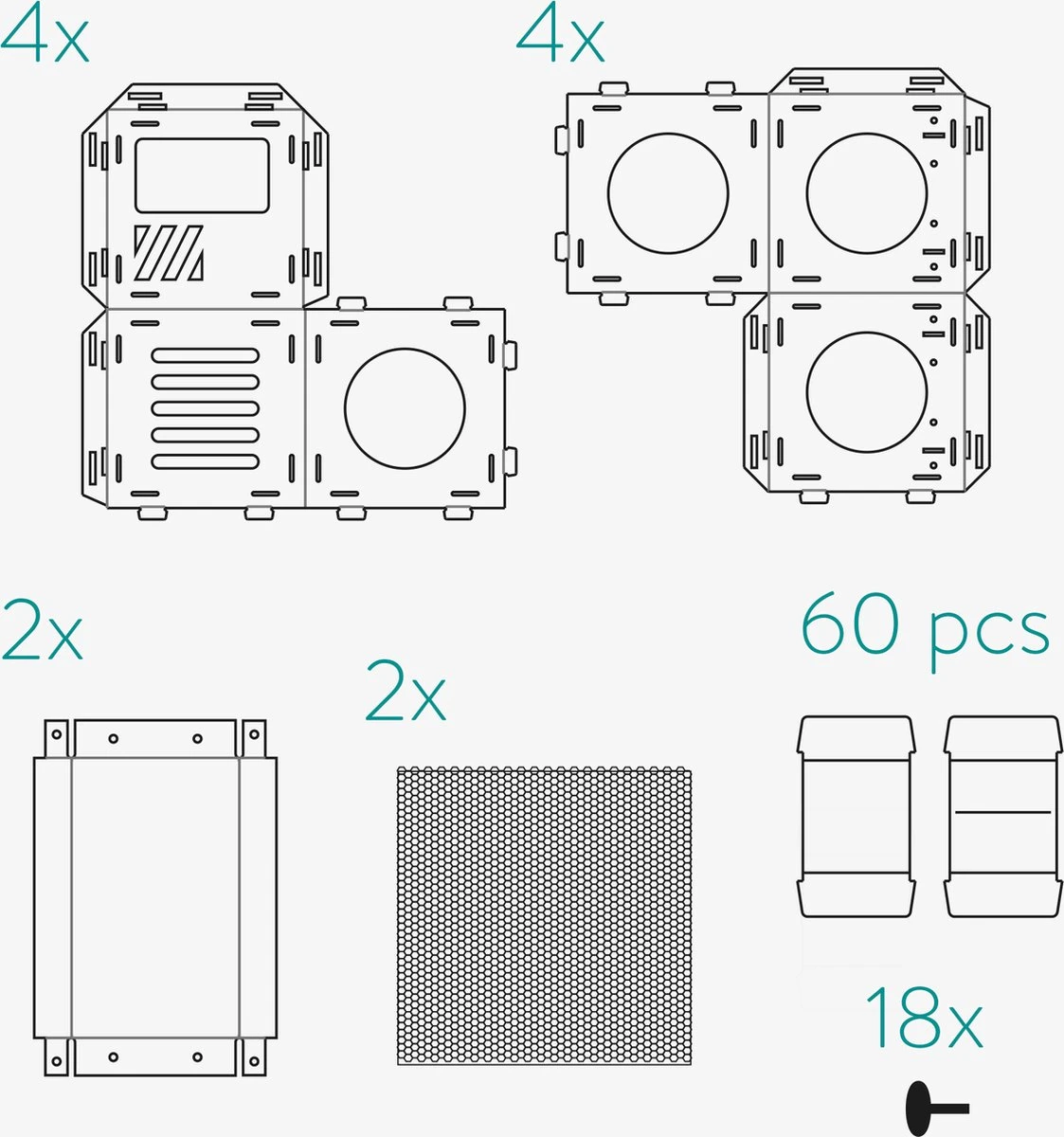- MAKKELIJKE MONTAGE: Deze set kan op elke gewenste mogelijke manier gebouwd worden met de bijgeleverde connectors en onderdelen. Het is een kwestie van klik en klaar!