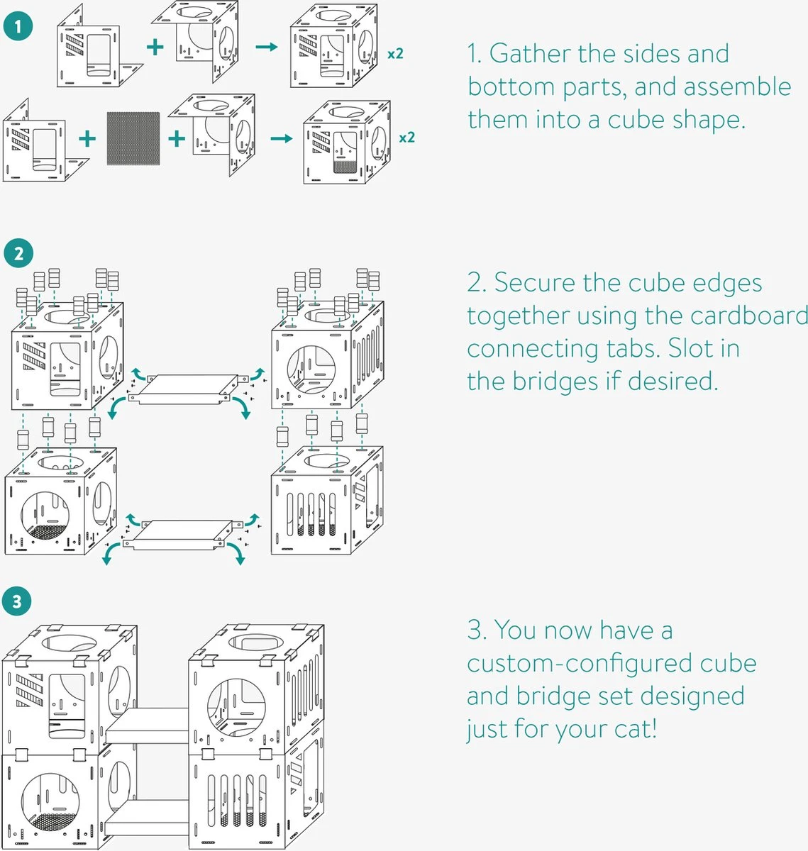 - DETAILS: Elk blok van deze set meet 30,5 x 30,5 x 30×5 cm. De set bevat 4 van deze blokken, 2 krabplanken, 2 bruggen en 1 set connectors. Je kunt meerdere sets aan elkaar bouwen.