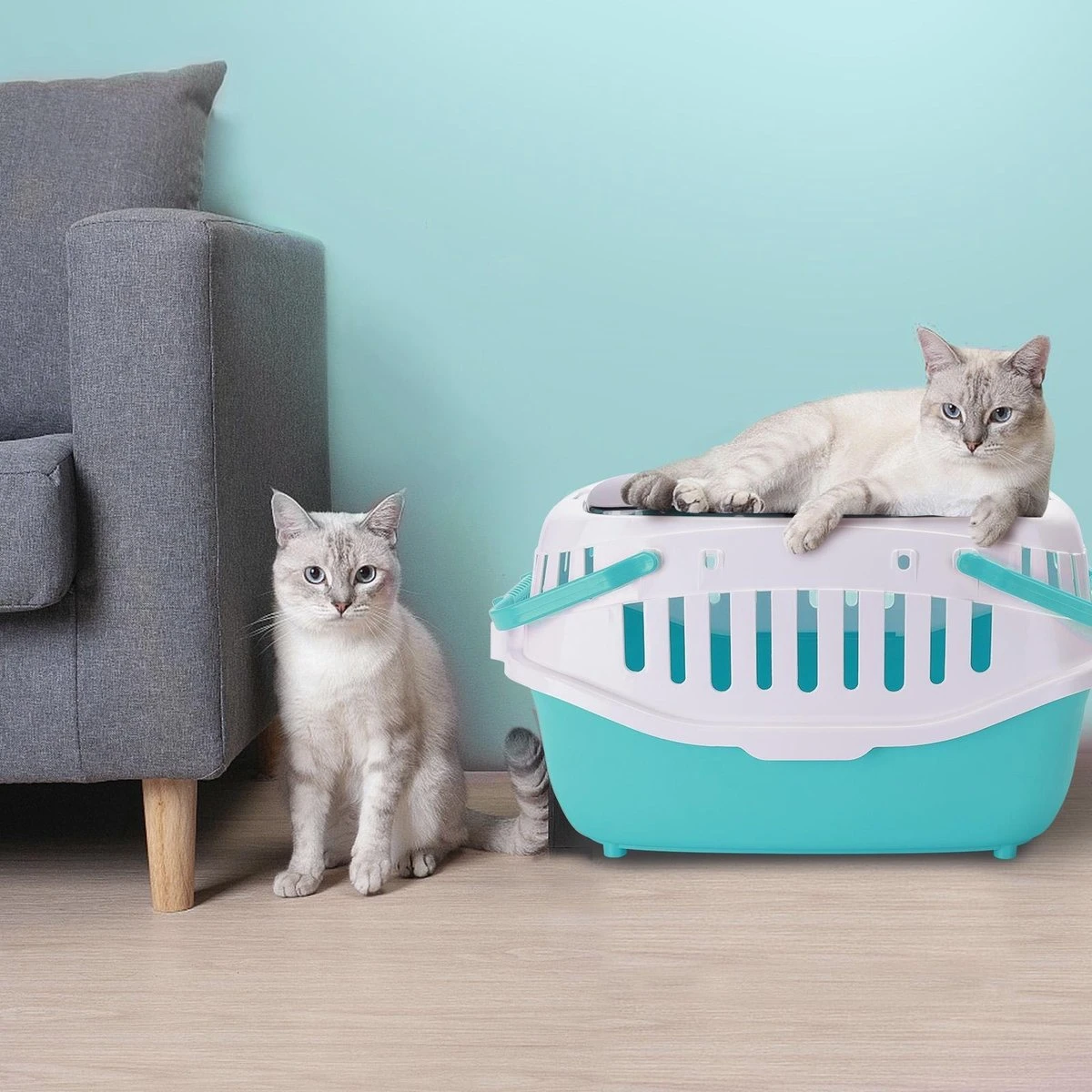 Handig om je hond of kat in te vervoeren, goede ventilatie, voorzien van hengsels om de box te dragen.