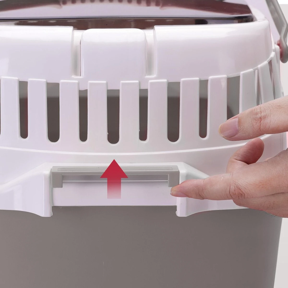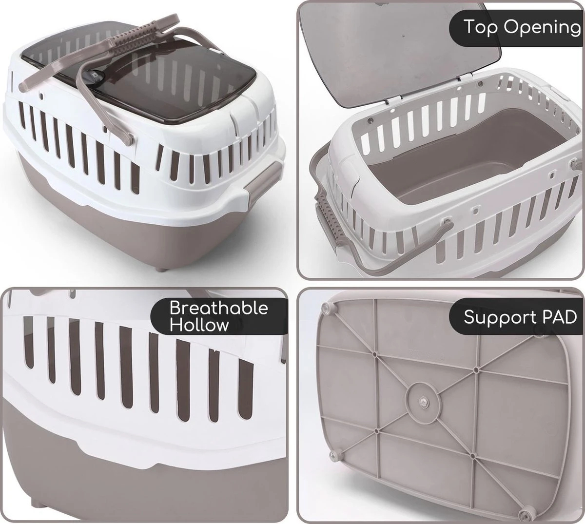 Draagbaar reishuis voor huisdieren. Het bovenste dakraam is goed afsluitbaar en eenvoudig te openen om je hondje of kat in te laden.