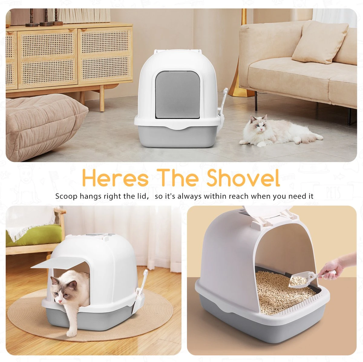 Grootte van de kattenbak: L54*B41*H45CM. Met voldoende ruimte biedt dit kattentoilet uw dikke kat de mogelijkheid om erin te spelen en zich uit te rekken. De structuur van de gesloten kattenbak kan tegelijkertijd de stinkende geur effectief verminderen.