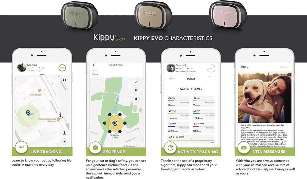 U KUNT DE KIPPY EVO APP GEBRUIKEN VANAF UW MOBIELE TELEFOON, TABLET EN OOK VANAF UW PC. U KUNT DE POSITIE VAN UW HUISDIER IN REAL TIME CONTROLEREN DANKZIJ DE GPS, WIFI EN BLUETOOTH LOCATOR VOOR HOND OF KAT; U KUNT OOK DIRECT DE ACTIVITEITENPARAMETERS CONTROLEREN.