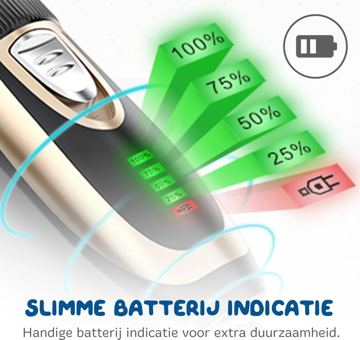 De tondeuse van Pawwy® is uitgerust met een krachtige 2000 mAh batterij en het heeft een maximaal geluidsniveau van slechts 50 decibel. Hierdoor zal jouw huisdier zich vertrouwd en fijn voelen tijdens een trimbeurt en kan je op een veilige wijze een optimaal resultaat behalen. Verder biedt het een professionele knipervaring met een gelijkmatig resultaat, zodat het scheren eenvoudig en soepel verloopt.