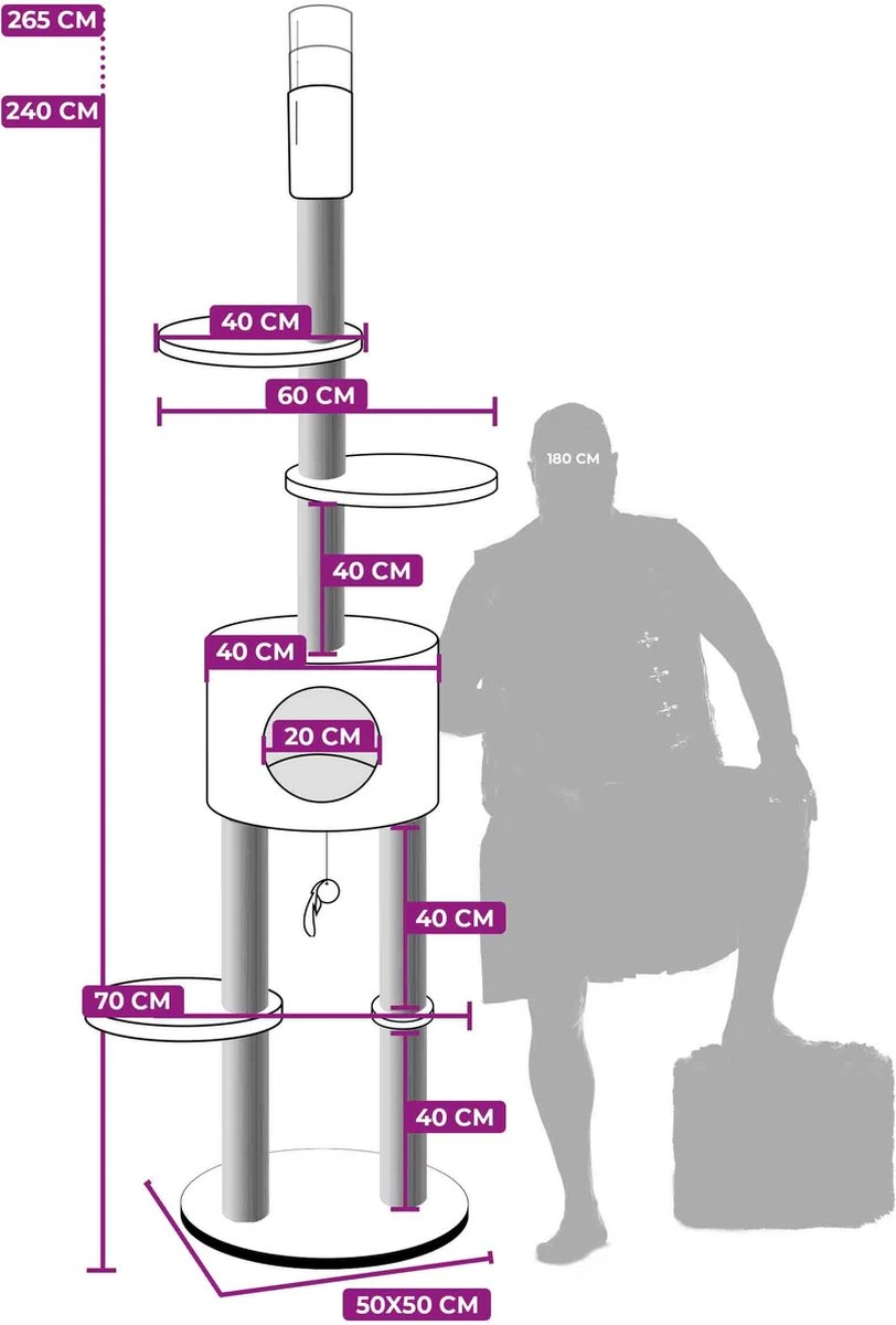 Ben je op zoek naar de alleskunner onder de krabpalen? Dan is krabpaal Anna 240 echt wat voor jou! Dit kattenmeubel is namelijk geschikt voor elk type en kattenras en er kunnen meerdere katten in spelen en slapen. Jouw Royal Rebels kunnen er ook heerlijk uitgebreid aan krabben of zich verstoppen in het slaaphuisje. Ook fijn: deze koninklijke krabpaal ziet er supermooi uit en neemt heel weinig ruimte in beslag. Kan gespannen worden tegen plafonds van 240 tot 265 centimeter.