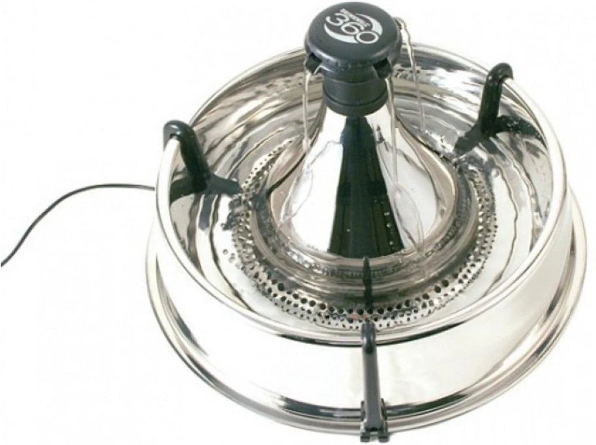 PetSafe Drinkwell 360 Stainless Steel Pet Fountain is een RVS drinkfontein. Deze waterfontein circuleert en filtert continu het water van jouw hond of kat, waardoor het schoner en frisser blijft dan in een normale waterbak. Deze fontein biedt 3,8 liter vers, gefilterd water in een RVS ontwerp dat gemakkelijk schoon te maken is! Het ronde ontwerp maakt hem gemakkelijk van alle kanten benaderbaar. Meerdere vrijvallende waterstromen (zoals water uit de kraan) voegen zuurstof toe voor frisheid en moedigen huisdieren aan om meer te drinken.