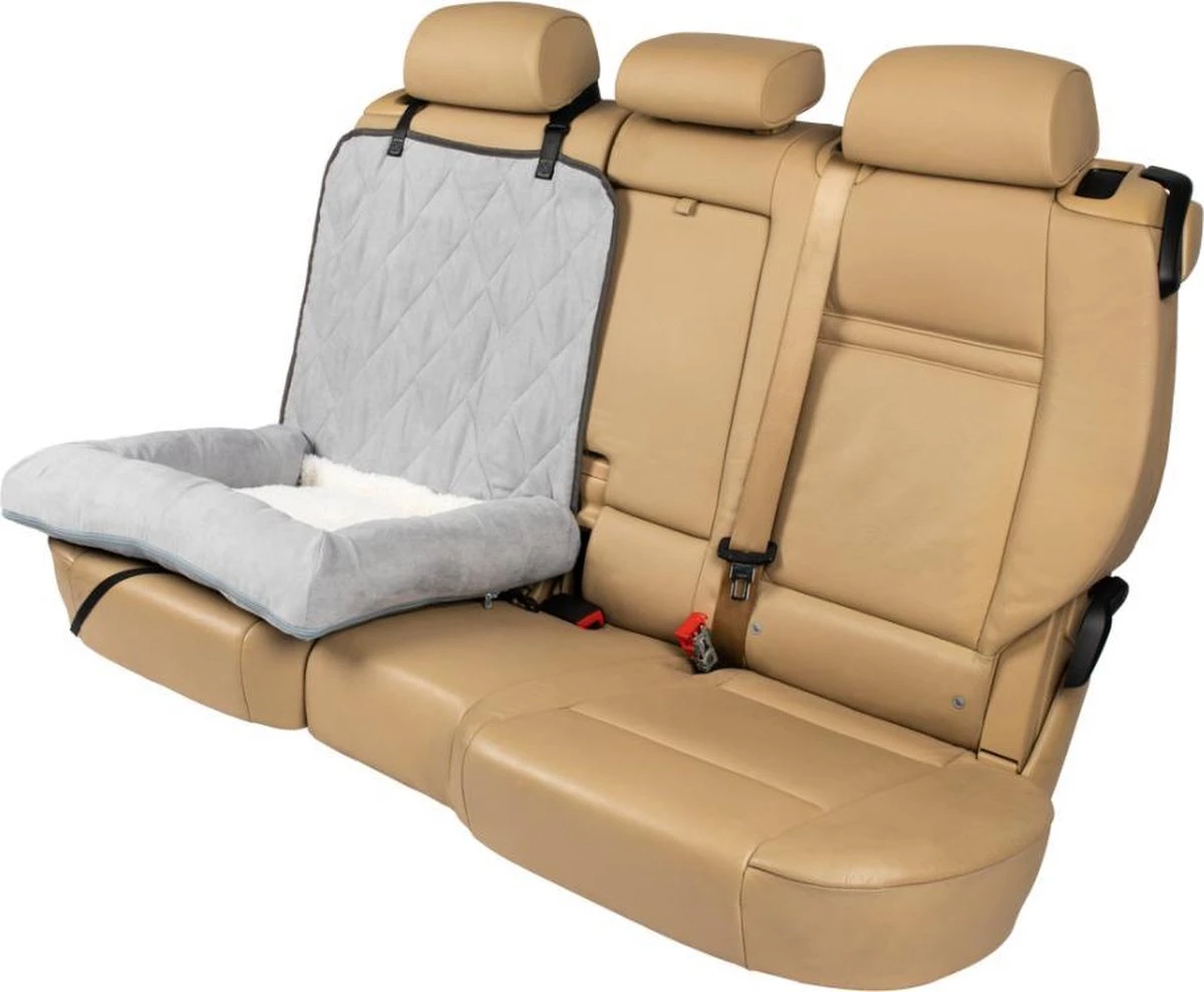 Het auto-hondenbed kan op elke autobank of autostoel met een hoofdsteun. De zachte, faux suède voering in combinatie met een goed gevulde rand en kussen zorgen voor een comfortabel gevoel van veiligheid en kalmeren angstige of onrustige honden tijdens lange ritten. Dankzij de uitsparingen voor de veiligheidsgordel kan de gordel gewoon worden gebruikt terwijl het hondenbed is bevestigd. Is het bedje vies geworden? Dan kun je de bekleding gewoon wassen in de wasmachine.