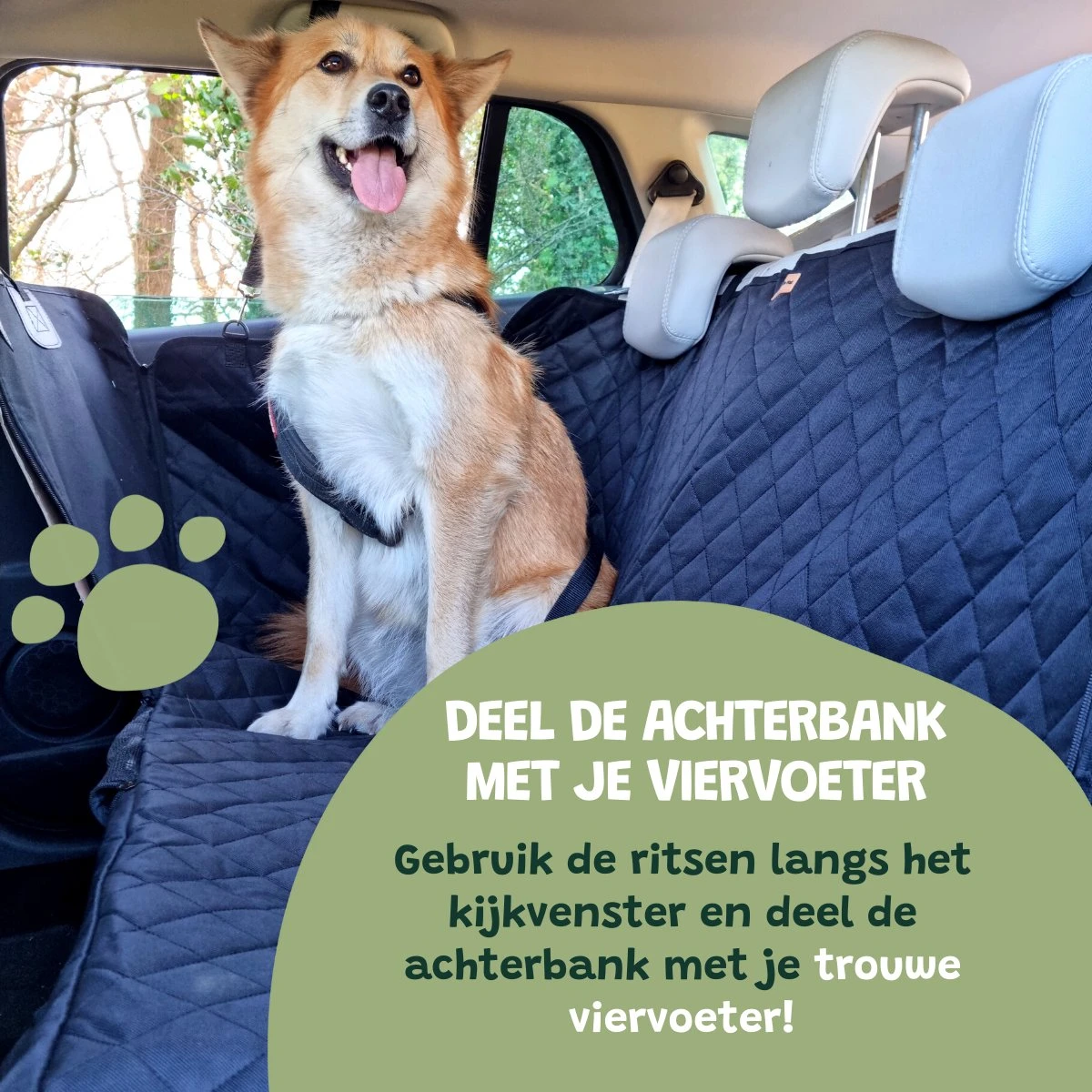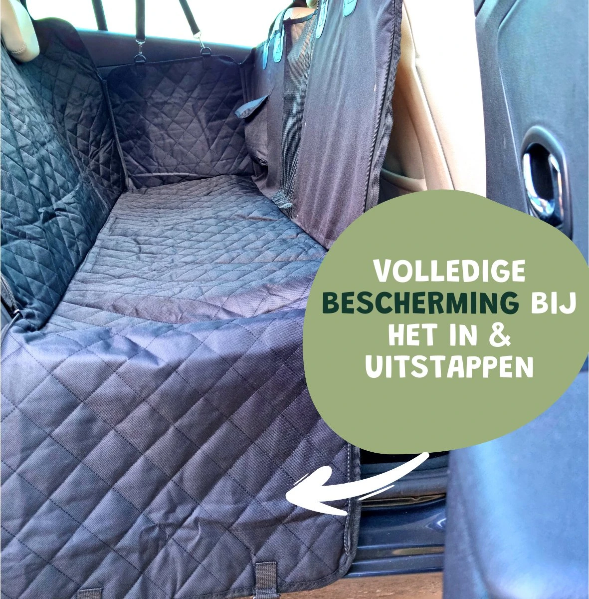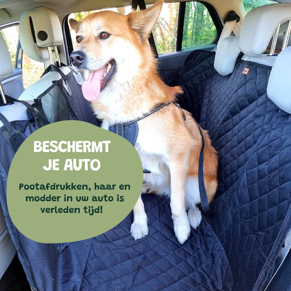 Onze hondendeken is gemaakt van hoge kwaliteit 600D Oxford, dit is extra dik en daardoor waterafstotend en krasvrij. Dit betekent geen vuil of vlekken meer op de achterbank tijdens het meenemen van de hond. Door de antisliplaag aan de onderkant van de deken en de instop hendels die tussen de rugleuning kunnen gestoken worden blijft de hoes stevig op zijn plaats. Ook beschikt de deken over zijflappen die omhoog te plaatsen zijn, deze zorgen ervoor dat de armleuningen schoon en onbeschadigd blijven.