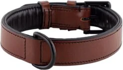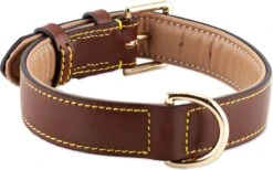Brute Strength – Luxe Leren Halsband Hond – Bruin Met Zwarte Stiksels – XL – (56 – 63) X 3,5 Cm