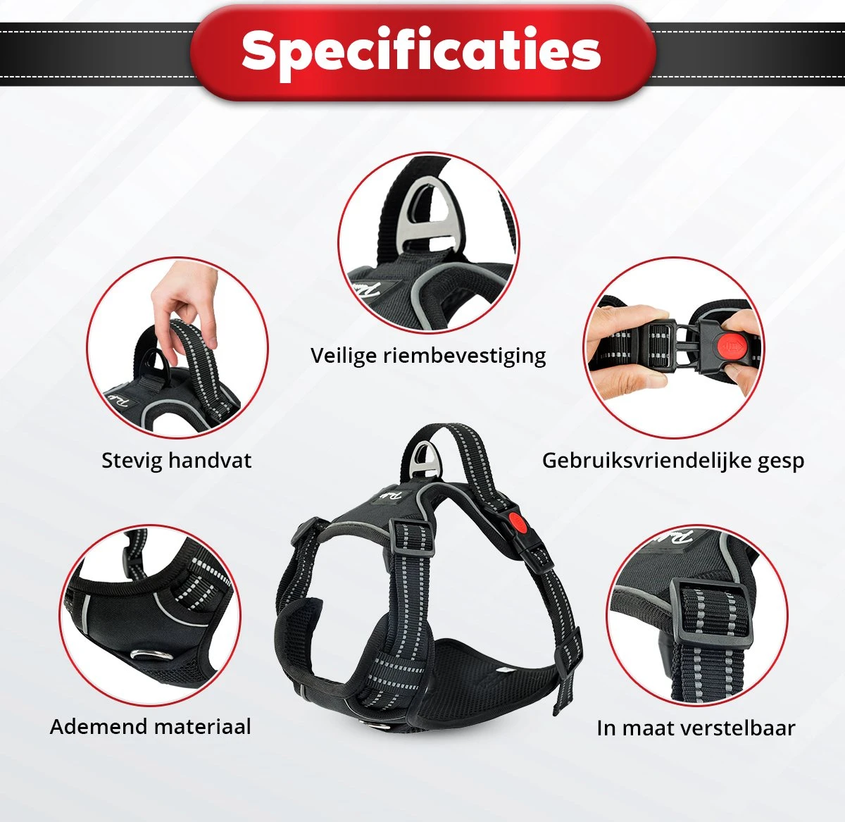 Investeer in de veiligheid en het comfort van je hond met ons hoogwaardige honden tuigje.