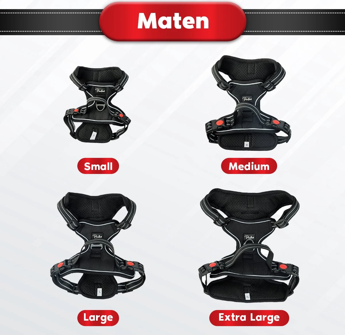 Bescherm je harige vriend tijdens het uitlaten met ons hoogwaardige honden tuigje! Dit Y tuigje is beschikbaar in vier maten (S, M, L en XL) en is ontworpen om perfect te passen bij de nek- en borstomtrek van je hond, in plaats van alleen op basis van gewicht. Bekijk onze handige maattabel om de perfecte maat voor je hond te kiezen.