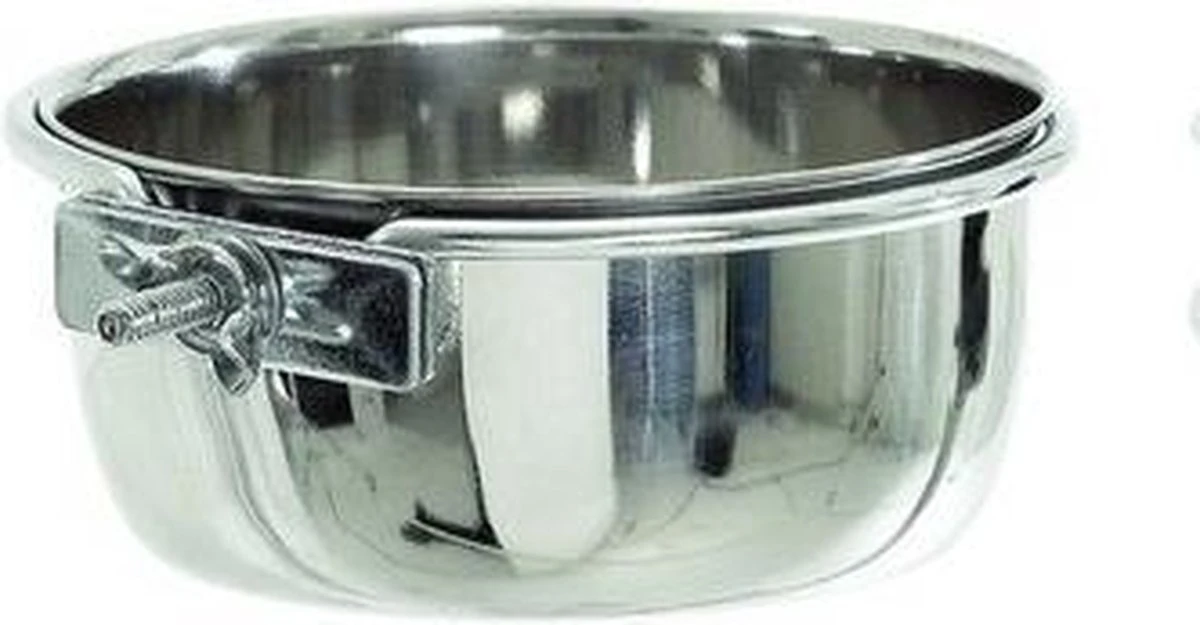 RVS Voerbak voor in de Bench met beugel om vast te zetten.