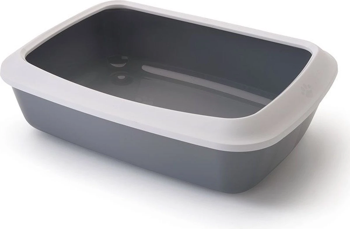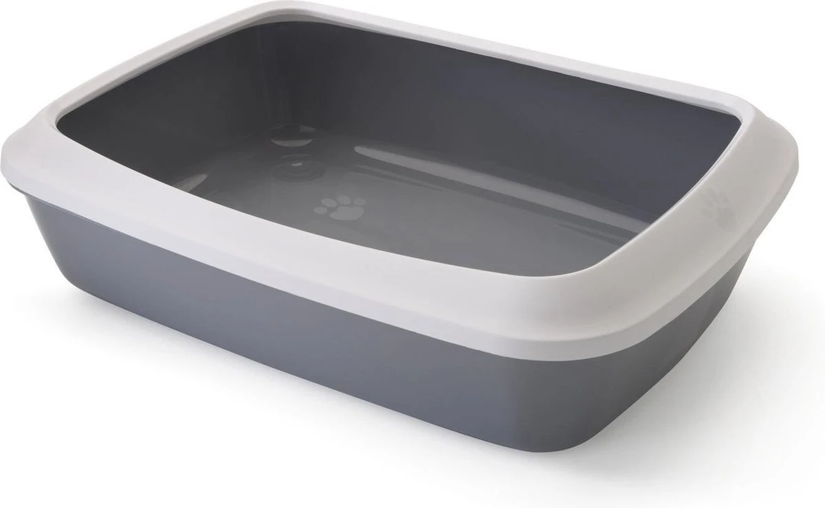 Kattentoilet met Rand Iriz is verkrijgbaar in de maat 42x31x12,5cm en 50x37x14cm in de kleur grijs/wit